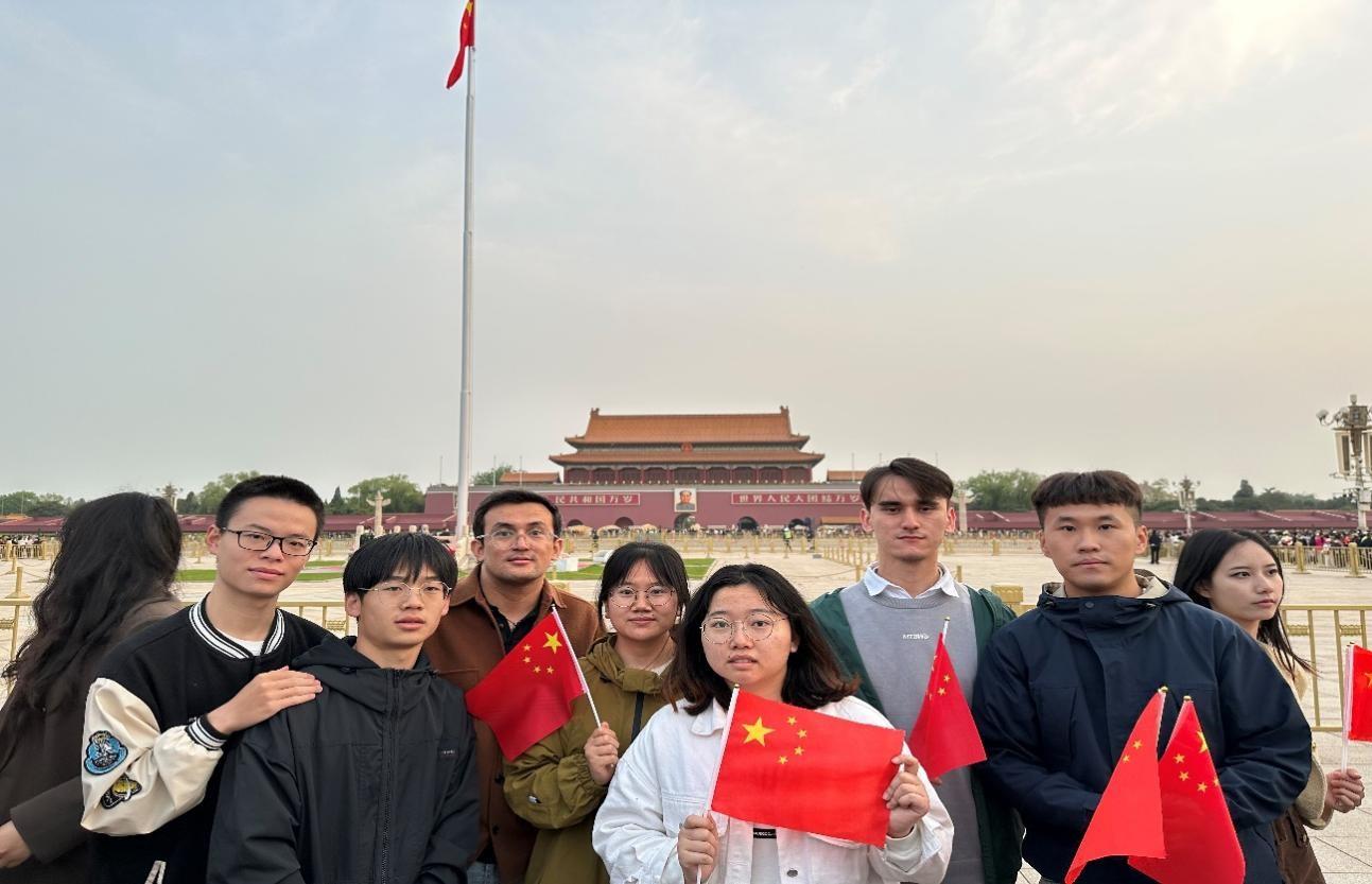 4月27日凌晨2:30,同学们早早来到天安门广场,在第一抹朝阳缓缓照亮天空时,观看了五星红旗在庄严的《义勇军进行曲》中冉冉升起。