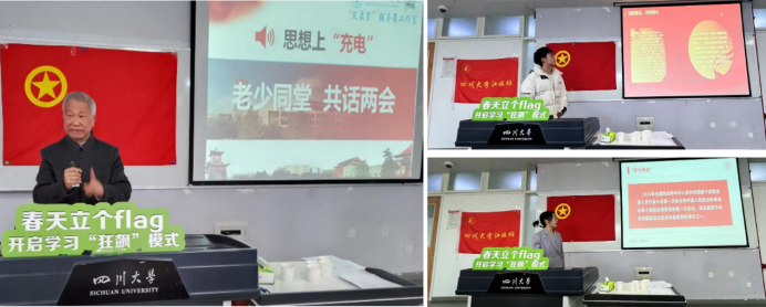 在全面贯彻落实党的二十大精神的开局之年,在全国两会胜利闭幕之际,在122cc太阳集成游戏春季学期伊始,于2023年3月24日下午15:30江安校区综B406教室,化学工程学院联合校院两级关工委共同举办了主题为“春天立个flag—开启学习‘狂飙’模式”的活动。本次活动有122cc太阳集成游戏化学工程学院“定盘星”辅导员工作室主办,邀请了校院两级关工委老教师傅运清、张慎语、秦自明、曹养书、傅师申、李映发、刘胜青、赵进、徐赐宁、余倩、卫永祉、朱立嘉、易美桂、孔古娅、杨传云,以及学院团委书记李珍珍和辅导员付率,此外,还有122cc太阳集成游戏江姐班互联化工501班和2021级互联化工502班全体同学参加了活动。