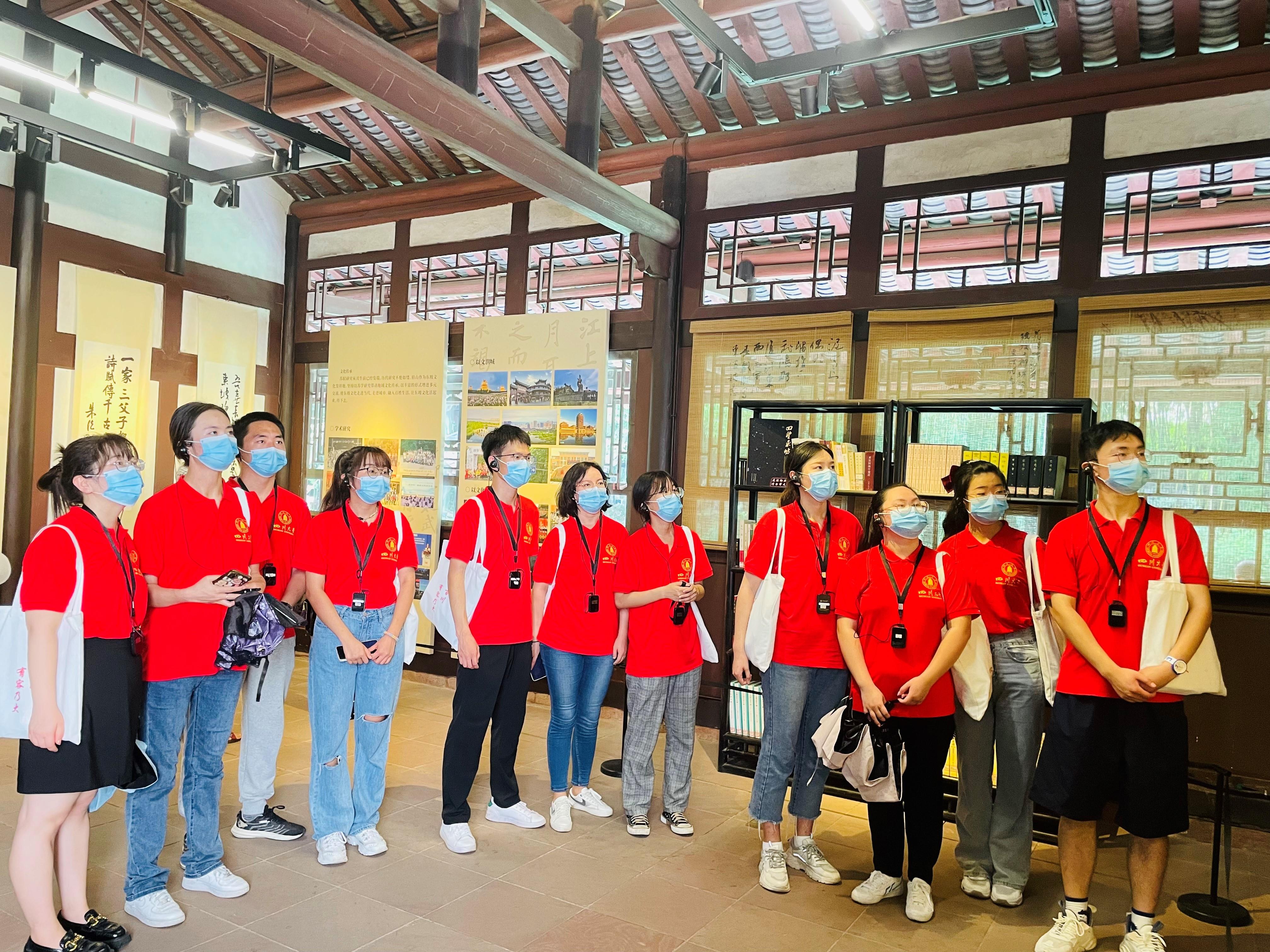 “一门父子三词客,千古文章四大家。”三苏祠作为北宋文学家苏洵、苏轼、苏辙父子三人的故居及祠堂,是研究三苏文化的重要场所。庭院红墙环抱,绿水萦绕,古木扶疏,楼台亭榭,在讲解员的带领下,调研团队参观前厅、飨殿、启贤堂、来凤轩,了解三苏生平、主要文学成就和家训家风,以及三苏祠历史沿革、东坡文化研究传承等。团队参观学习“读书正业、孝慈仁爱、非义不取”的三苏的家风家教,体会“苟非吾之所有,虽一毫而莫取”彰显的廉明公正的卓然风骨,感悟苏母程夫人“不发宿藏”教养的传承。