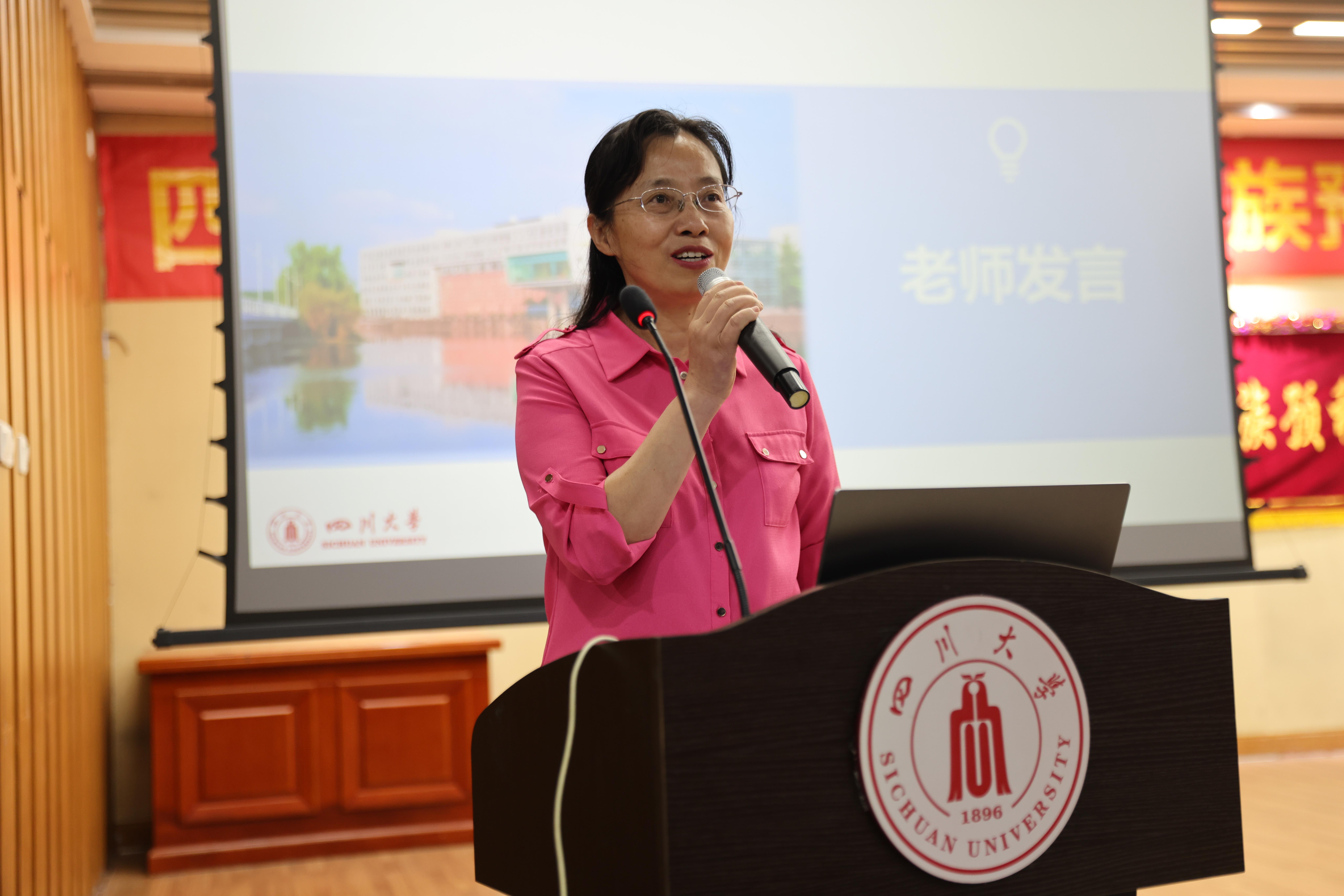 任课教师代表蒋文正在发言中说,同学们课堂上认真思索、求取真理,球场上挥洒汗水、勇攀高峰,舞台上自信昂扬、光彩夺目,展现出了青春最美的样子。蒋老师还引用孔子的“人能弘道,非道弘人”、苏轼的“博观而约取,厚积而薄发”、毛泽东的“文明其精神,野蛮其体魄”,鼓励同学们志存高远、拼搏奋进,肩负推动国家复兴、维护民族团结的伟大历史使命,将青春与知识无私奉献给伟大的祖国和人民。