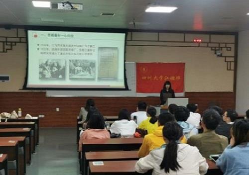图3 2018级“江姐班”学生胡高飞、邹博宇讲述川大英烈故事