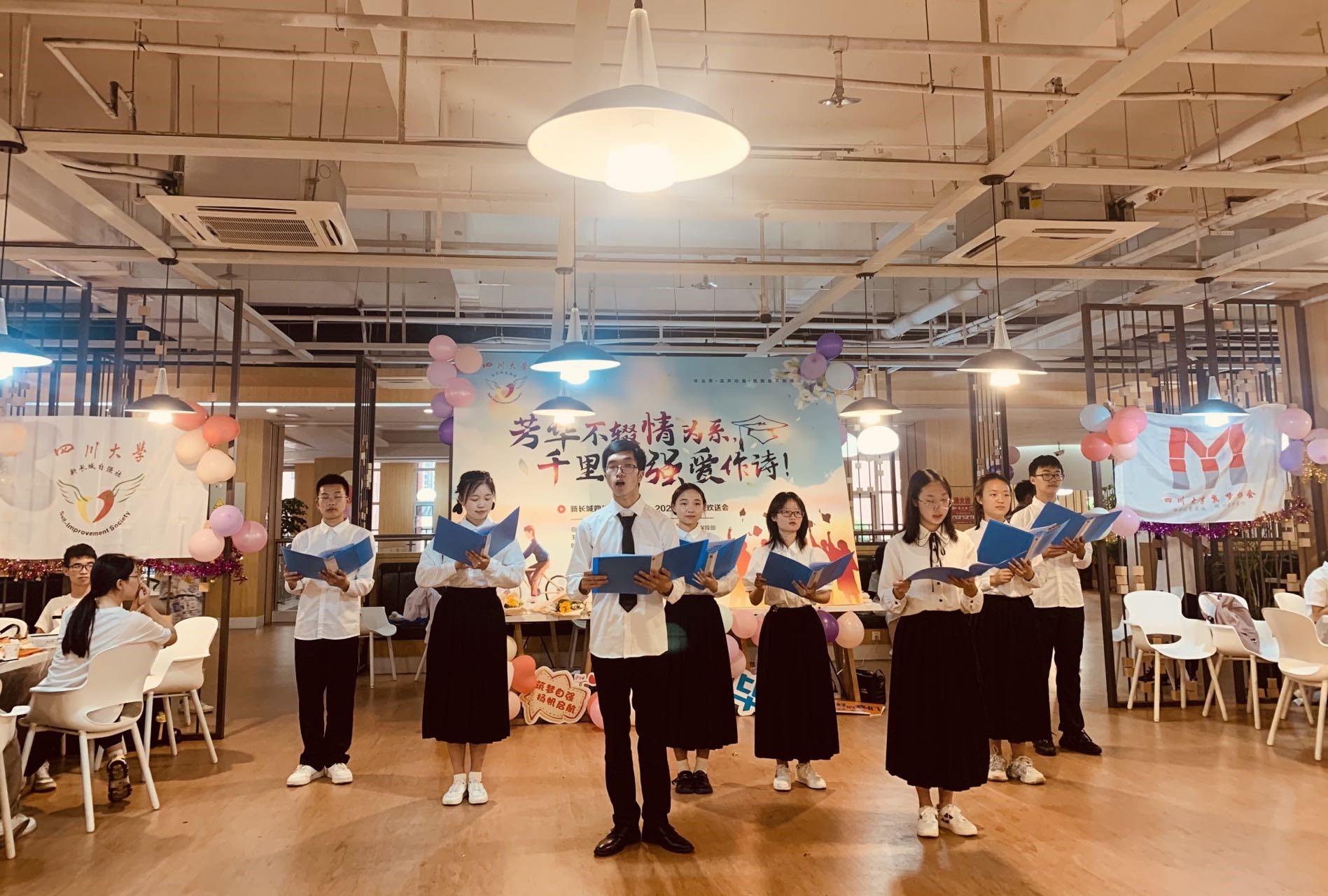 2022年6月5日,新长城122cc太阳集成游戏自强社以“芳华不辍情为系,千里自强爱作诗”为主题,在学工部和后勤保障部的指导下与劳动教育相结合,于江安校区东苑食堂成功举办2022届毕业生欢送会。学生工作部、后勤保障部相关工作负责老师与自强社社员一起参加了本次活动,共同为自强社2022届学生送上祝福。