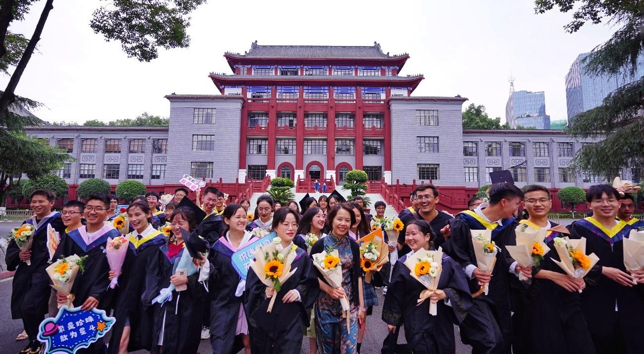 当天上午,毕业生身着学位服,手捧鲜花,在老师和学弟学妹的陪伴下从文华活动中心出发,漫步校园,在体育馆操场上、北大门下、明德楼前、荷花池畔等地重拾最美的记忆、定格最靓的身影。