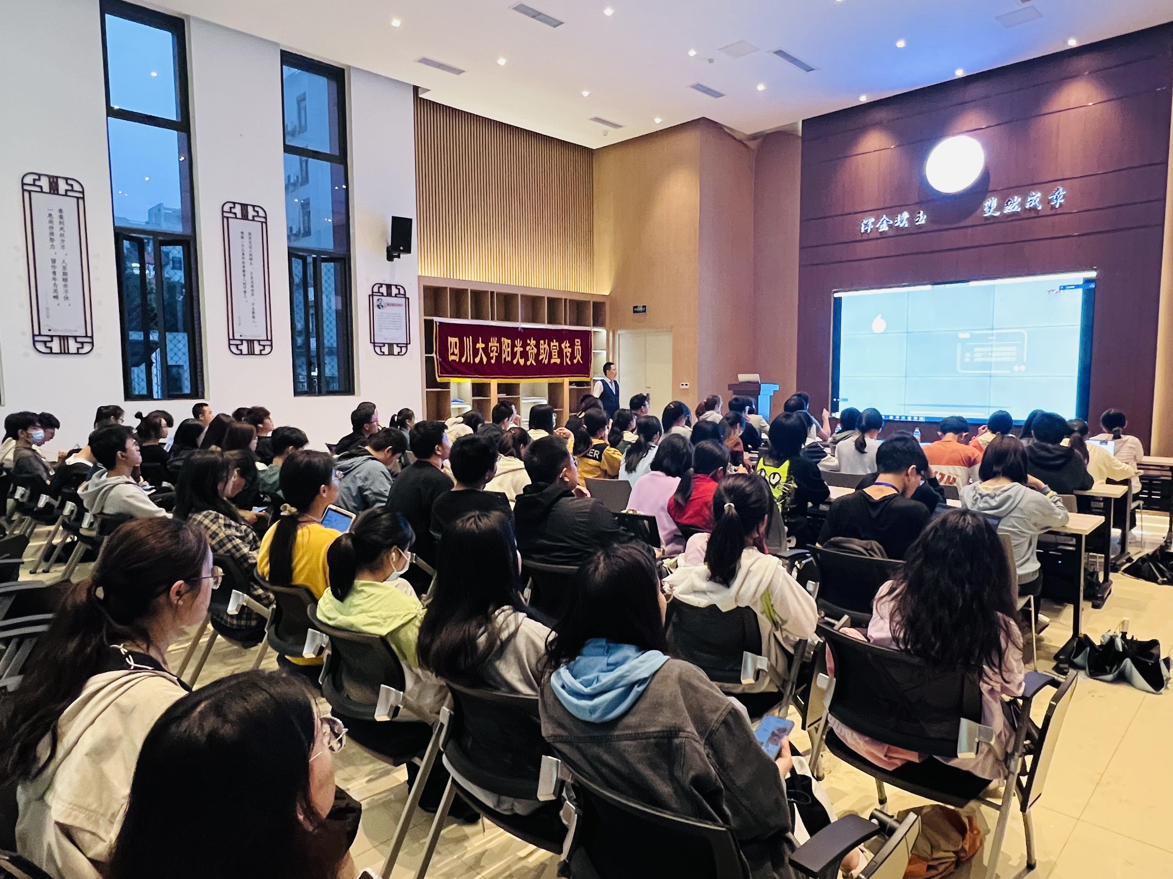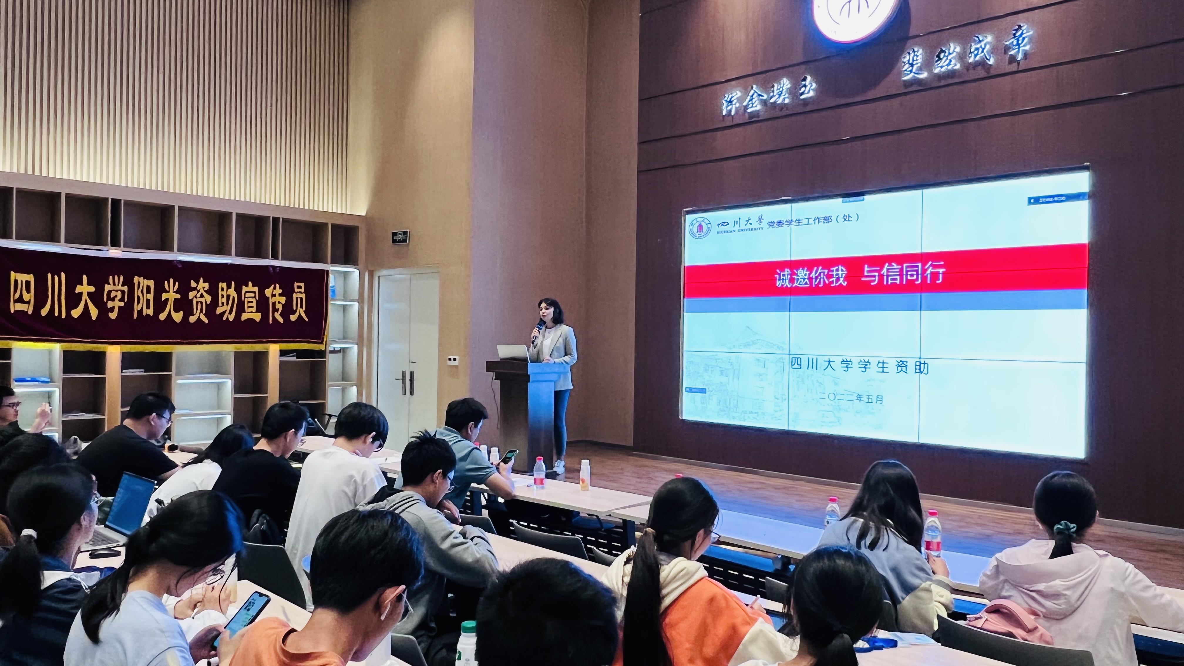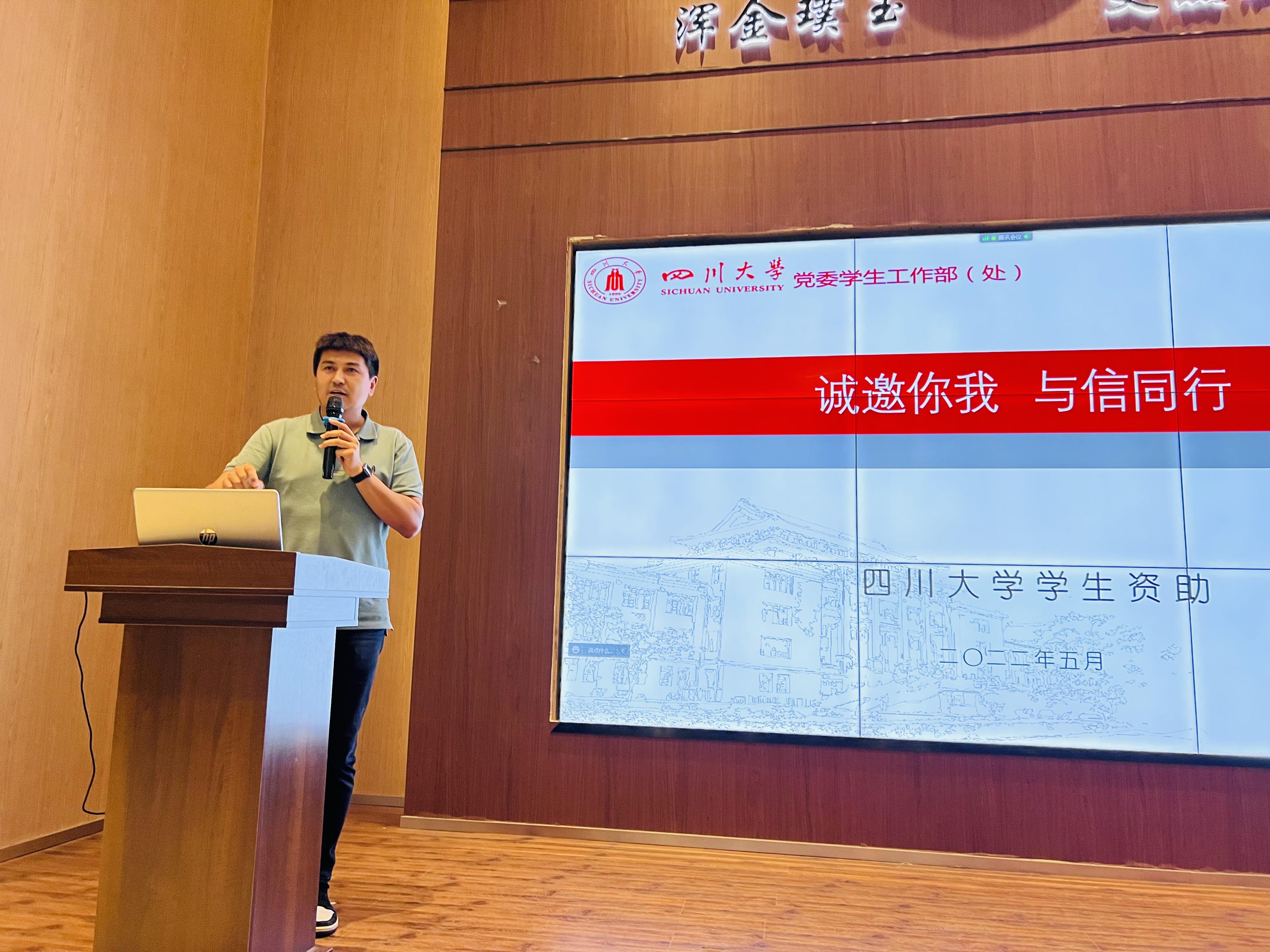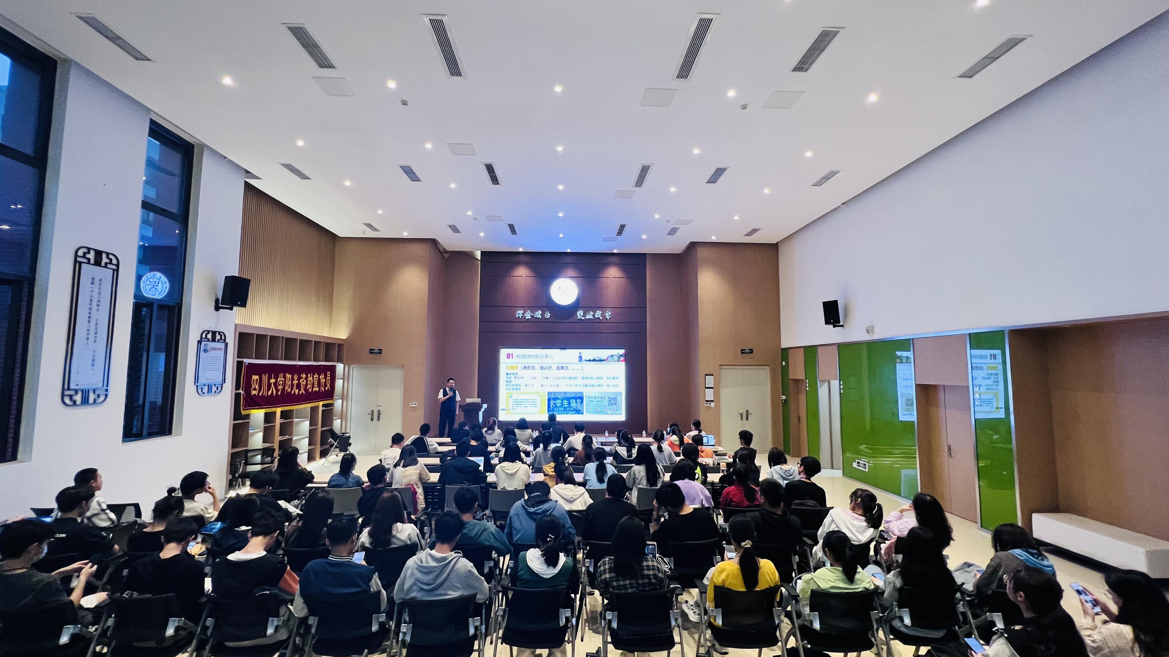 据悉,学工部联合交通银行、民生银行、中国银行及学校金融知识普及基地共同制作了包含金融知识普及、防诈骗教育、不良校园贷防范等内容的课件,并在15个学院进行了宣讲。此次培训会,在前期宣讲的基础上,针对阳光资助宣传员进行强化培训,帮助同学们更好地深入学院、年级开展资助诚信宣讲活动,希望每位川大学子都能笃诚修心,明礼守信,在人生道路上不断收获幸福果实。