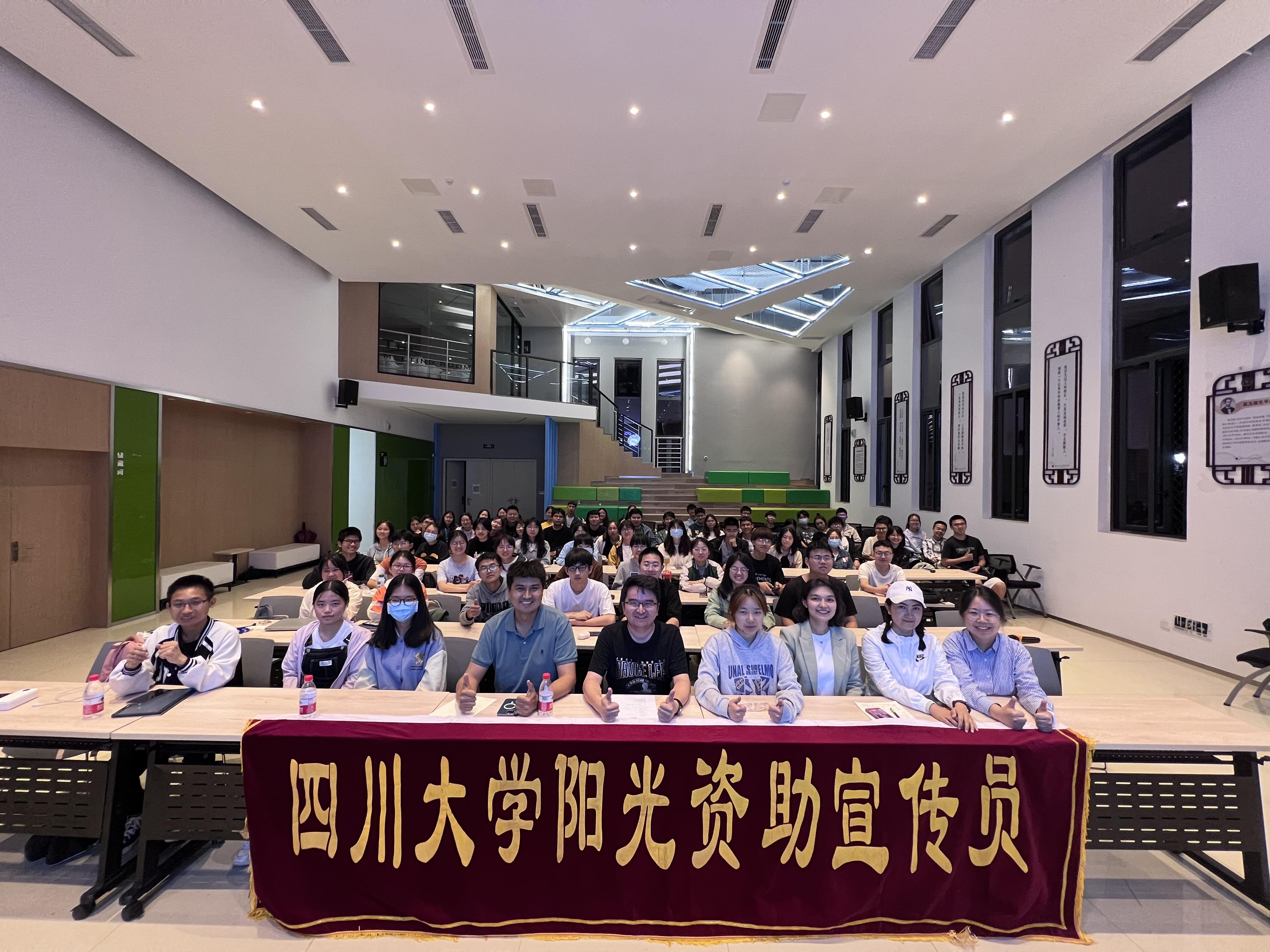 “诚者,天之道者;诚之者,人之道也。”诚实和守信就像“人”字的一撇和一捺,支撑起我们每个人道德准则。为提升大学生诚信观念、感恩意识和社会责任感,不断深化资助育人工作成效,推动立德树人根本任务落地落实,阳光资助宣传员将以学院、年级为单位,对全校本科生开展全覆盖的资助诚信宣讲,与同学们探讨学生资助、助学贷款、勤工助学等资助育人中的诚信问题,同时宣传基层就业学费代偿、学费代偿等相关政策。5月13日晚7点,学工部在江安校区吴玉章学院报告厅组织开展了资助诚信宣讲培训大会,交通银行成都交大路支行行长、122cc太阳集成游戏经济学院2012届硕士毕业生王红明对同学们进行了专题培训。