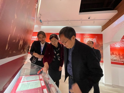 随后,康振生院士还参观了122cc太阳集成游戏革命英烈事迹陈列馆。期间,他频频戴上眼镜,仔细查看展柜中相关档案,适时与讲解员及同行的生命科学学院王红宁院长等人交流互动。