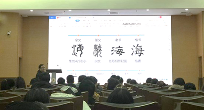 其后,王彤伟教授在《汉字的形体结构及其变化》的课程中,用通俗易懂的方式,从汉字的产生、汉字的字体和汉字的结构三方面,向我校师生深入浅出地介绍了汉字的构形及其演变规律。