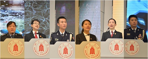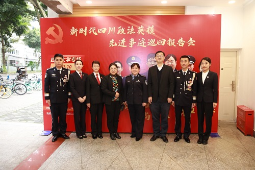 活动由党委学生工作部部长陈森主持。报告会上,6位来自四川政法战线的英模,从不同角度、不同侧面,讲述了他们在各自工作岗位上发生的感人故事。四川省女子强制隔离戒毒所党委副书记、政治委员宁晓英,四川省彭州市人民法院丹景山人民法庭庭长祝增巧,四川省凉山州公安局禁毒缉毒支队支队长周脉军,四川省成都市青羊区司法局苏坡司法所所长王山鹤,四川省南充市仪陇县人民检察院政治部副主任张晓琴,四川省广安市公安局经开区分局政委陈界安,分别以《风雨战疫向天歌》《时刻擦亮为民初心》《不忘初心方能无悔青春,忠于使命铸造热血军魂》《寻找打开心结的钥匙》《用大爱托起明天的太阳》《打击犯罪无国界,虽远必追百姓安》为题作了宣讲报告。他们中有人率“娘子军”在湖北监狱英勇战疫,有人在基层普法安民心,有人在禁毒前线九死一生,有人深入社区调解维护社会稳定,有人关心“事实孤儿”,有人为打击网络犯罪跋山涉水,他们用或激昂或深情的语调诉说着对岗位、对国家的热爱。