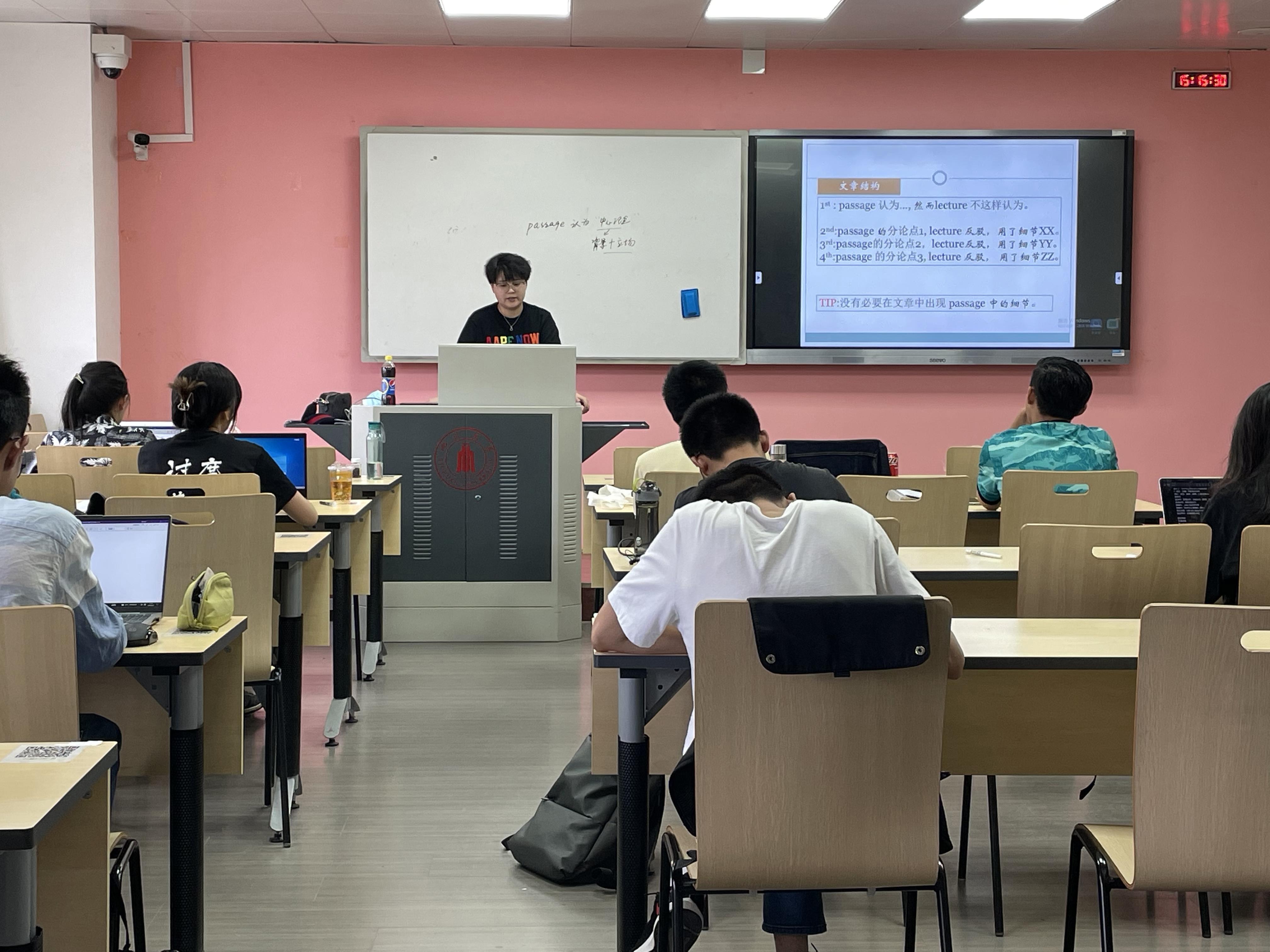 本次“种子计划”语言培训的雅思托福系列课程全程采用线下小班教学的方式进行,涵盖听力、口语、阅读、写作四门全科内容。在整个国际语言能力的课程中,老师们将以雅思、托福的考试特点以及真题考点为依托,从听、说、读、写四个版块分别为同学们讲解雅思、托福考试中的重点和难点。在首次课程中,托福基础班进行了听力和阅读的训练,托福精英班进行了阅读和写作的训练,雅思基础班进行了阅读和写作的训练,雅思精英班进行了听力和口语的训练。