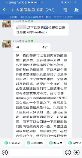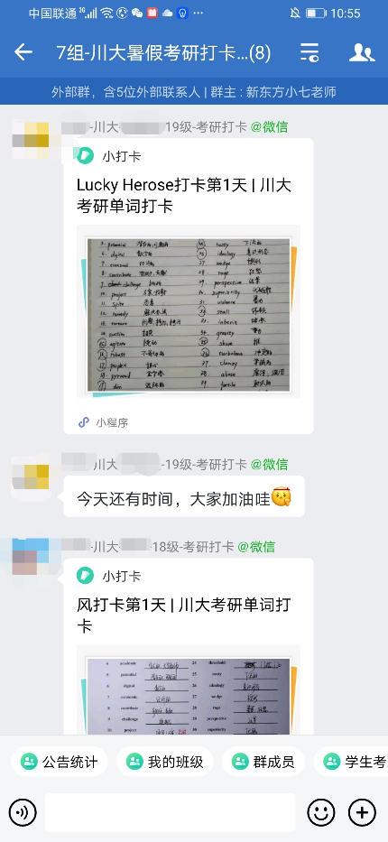 活动期间,同学们有条不紊地进行着相关课程的学习,积极交流;老师们在微信群里及时给出反馈和改进意见。同学们的打卡记录也彰显了川大学子积极的求学热情和丰硕的学习成果,使得整个训练营活动形成了良好的学习氛围和正能量循环,带动了暑期居家学习的热情。