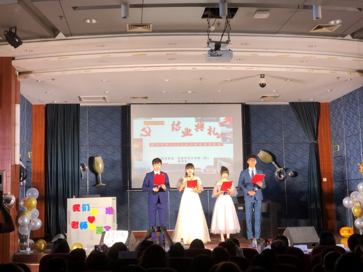 6月21日上午,2020级少数民族预科班结业典礼在江安校区二基楼报告厅隆重举行,学校党委学生工作部和教务处相关工作负责人、教导员、任课教师、新疆派驻老师和124名预科班学生参加了结业典礼。