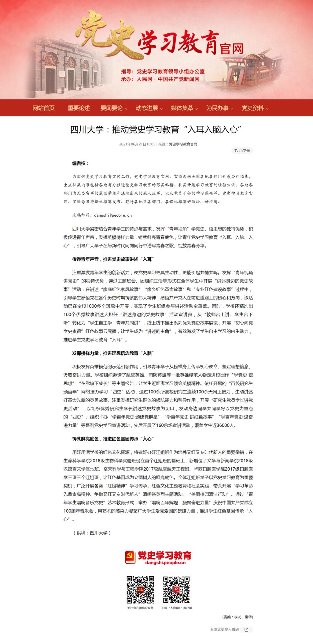 编者按:6月22日,党史学习教育官网以《122cc太阳集成游戏:推动党史学习教育“入耳入脑入心”》为题,对我校紧密结合青年学生的特点与需求,发挥“青年视角”学党史、悟思想的独特优势,积极传递青年声音,发挥英模榜样力量,铸就鲜亮青春底色,让青年党史学习教育“入耳、入脑、入心”的特色做法进行了报道,全文如下: