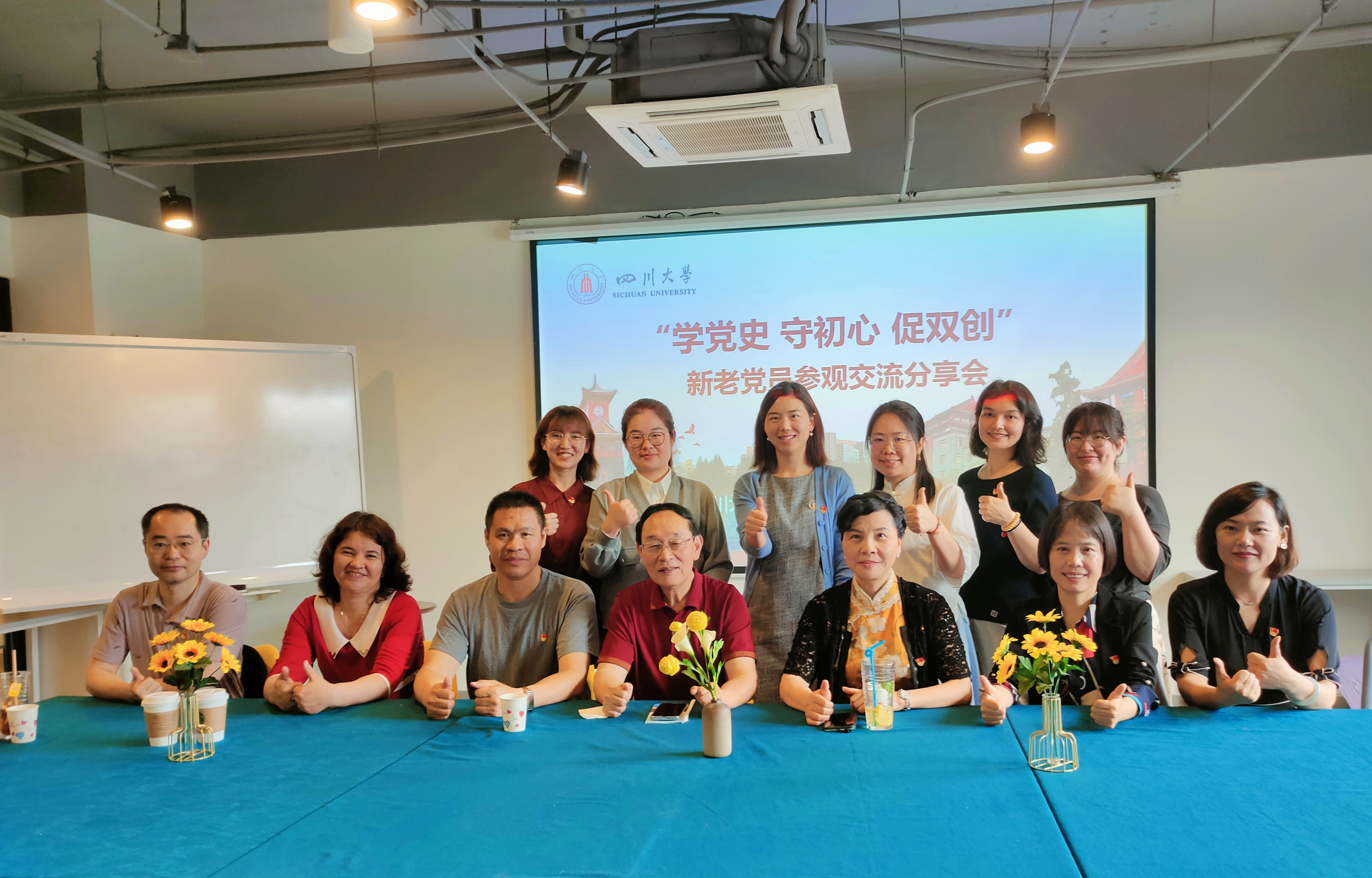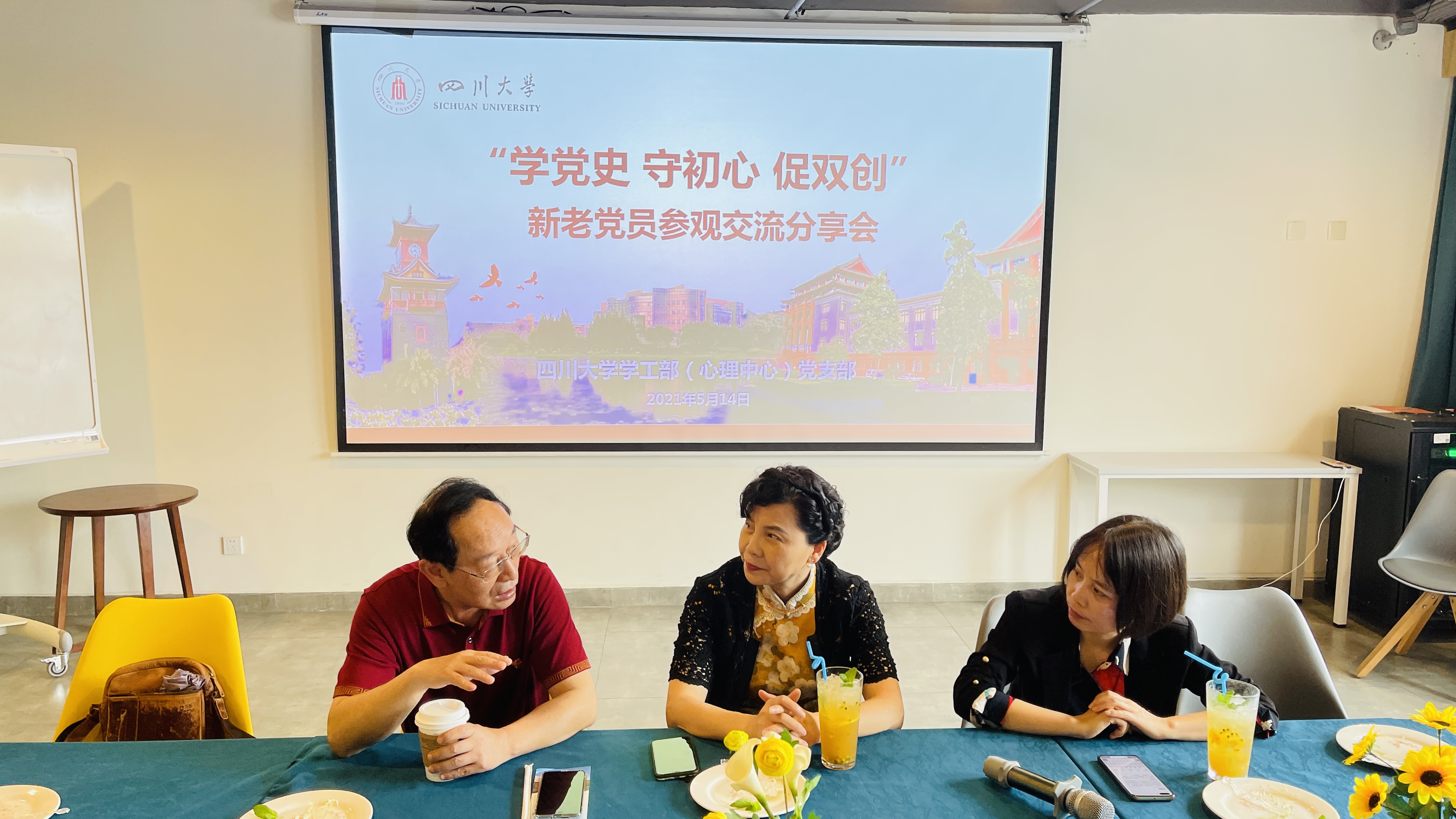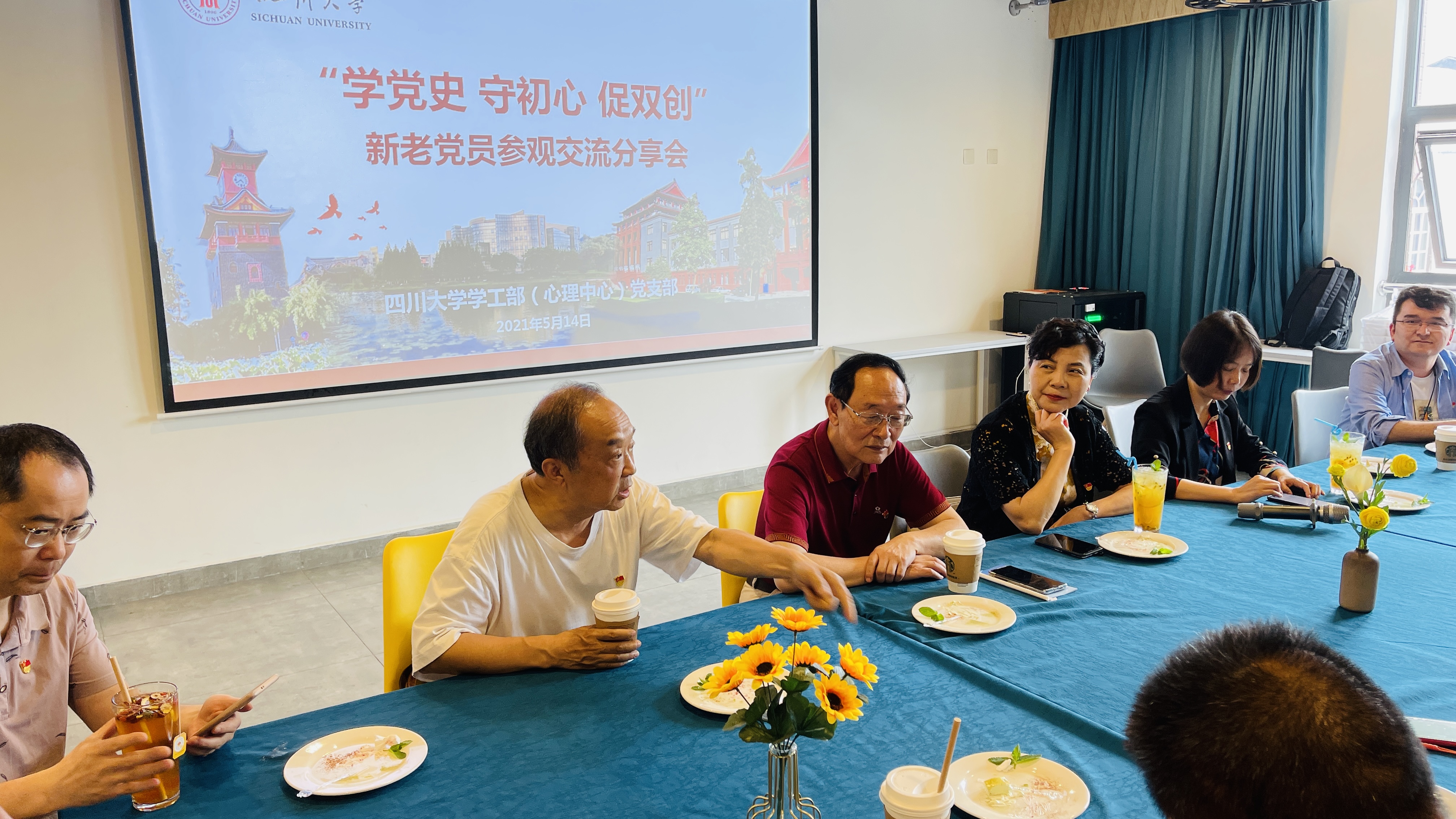 从事多年学生工作的曾桂秀老师结合上周重庆红色教育基地的学习参观经历讲到了增强当代大学生对党和国家的感恩教育的重要性,并建议我们在工作中要多层次、多形式地引导大学生对党史进行学习和了解,促进大学生的成长成才。新疆内派教师张志明老师说:老同志是我们年轻一辈的精神支柱和学习榜样,三位老党员在川大服务学生成长成才,成为学生的引路人,这种良好作风和朴实无华的精神非常值得我们学习。