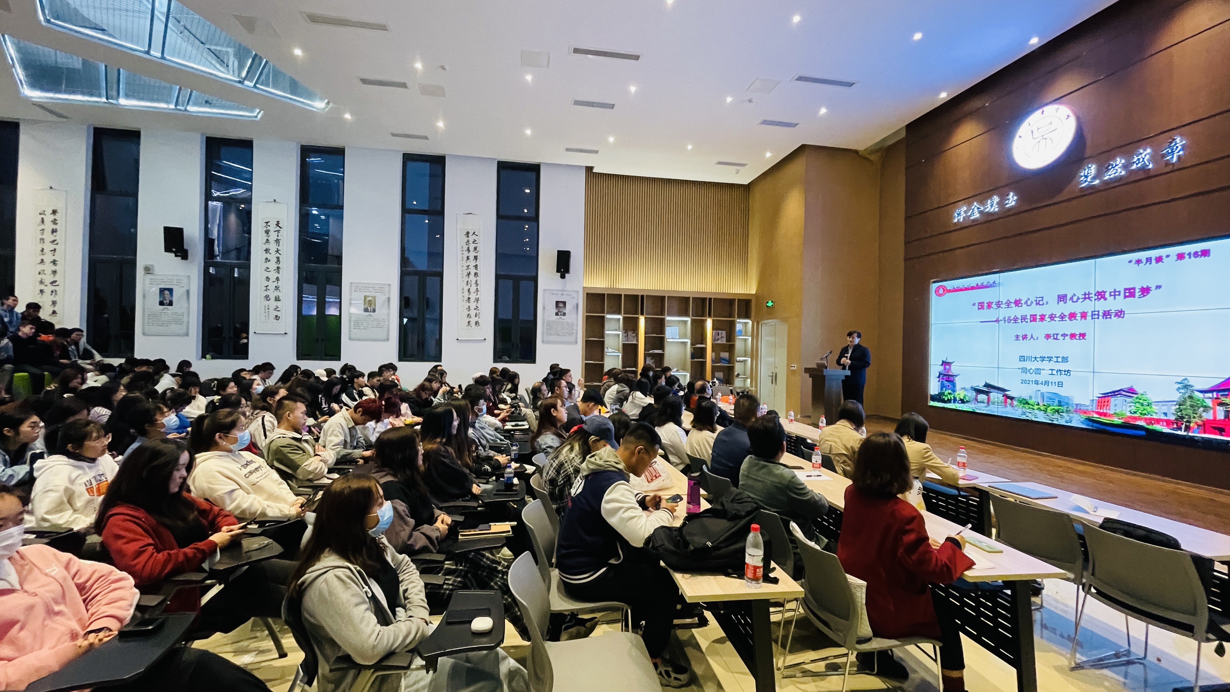 为进一步增强学生的国家安全意识,引导学生树立正确的国家安全观,4月11日晚,我校同心圆工作坊以“4·15全民国家安全教育日”为契机,在江安校区22舍多功能厅开展了“国家安全铭心记,同心共筑中国梦”为主题的第16期“半月谈”活动。本次活动邀请了马克思主义学院特聘研究员、博士生导师李辽宁教授做主讲嘉宾,2020级少数民族预科班全体学生以及各民族本科生代表参加了此次活动。