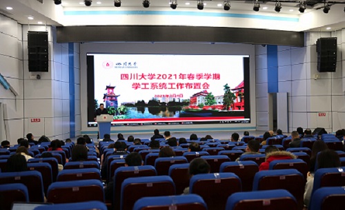 春光无限好,奋斗正当时。新学期伊始,为在新的起点创一流、攀高峰,开拓学生工作高质量发展新局面,2021年3月4日下午,学校在望江校区东三教演播厅召开2021年春季学期学生工作布置会。校党委副书记郭勇,党委学生工作部、研究生工作部、就业指导中心、心理健康教育中心、校团委等职能部门负责人及各学院(系、中心、所)分管学生工作副书记、学生科长参加会议。会议由学工部副部长周志文主持。