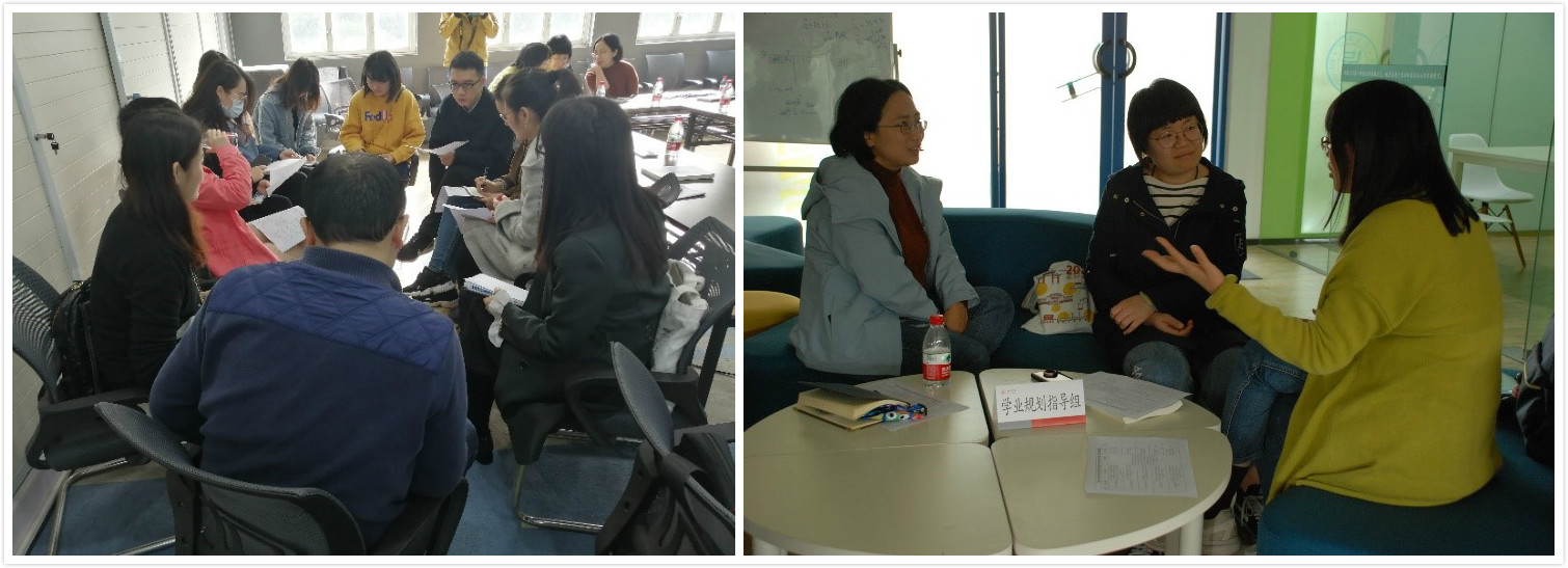 接着,导师们围绕“新生适应指导”“学业规划指导”“学习效能指导”“升学指导”“沟通协调能力指导”五大学业主题分组展开研讨交流,提出了一系列富有建设性的意见和建议。新生适应指导组认为,新生适应工作相当重要。应在全面调研新生适应问题的基础上,结合各学科实际情况和相关文献的研读,提出更具针对性和科学性的新生适应性教育指导方案;学业规划组针对在学业影响上朋辈效应比导师大这一普遍情况,提出导师队伍的权威性还需进一步树立,朋辈的影响也需进一步引导;学习效能指导组从内生动力和外部支持两个层面进行分析,认为在内生动力层面,存在学生目标模糊或者目标单一、学习方法缺失两大问题,在外部支持层面存在学校监管不足、社交平台运用不够两大问题,需要内外结合,建立完整性的、系统性的理论框架和实操框架;升学指导组提出,升学指导是一个重点工作,对学生发展起着至关重要的作用,可采用个体指导和集体指导相结合的方式进行;沟通协调组就“家校互动”展开了讨论,认为培养学生是家校共同的目标,在学生的学习成长过程中,需与家长、学生共同建立亲密感、认同感。