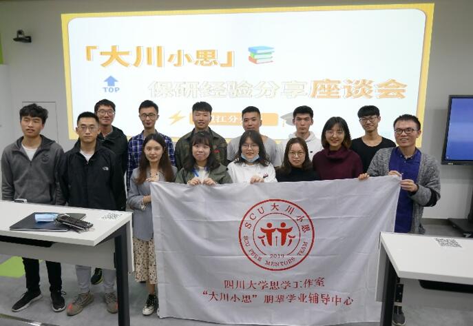 11月15日,学工部思学工作室“大川小思”朋辈学业辅导中心举办的保研经验分享座谈会分别在望江校区基础教学楼C座与江安校区二餐对面(原浴室)一楼报告厅如期举行。本次座谈会邀请到保研名校的朋辈导师们作为经验分享嘉宾,2018级(四年制)与大2017级(五年制)报名成功的同学和“大川小思”团队参与了此次座谈会。