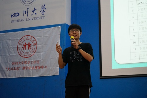在川大,课程学习之外还有许多丰富多彩的活动,比如“大挑小挑”、“互联网+”等高含金量的比赛,但许多同学对于大学期间的比赛颇为陌生,竞赛组朋辈导师、专业TOP1%、获奖100+、机械工程学院18级刘童同学为新生们介绍了大学期间的重量级比赛,应如何参加比赛及其能获得的收益。