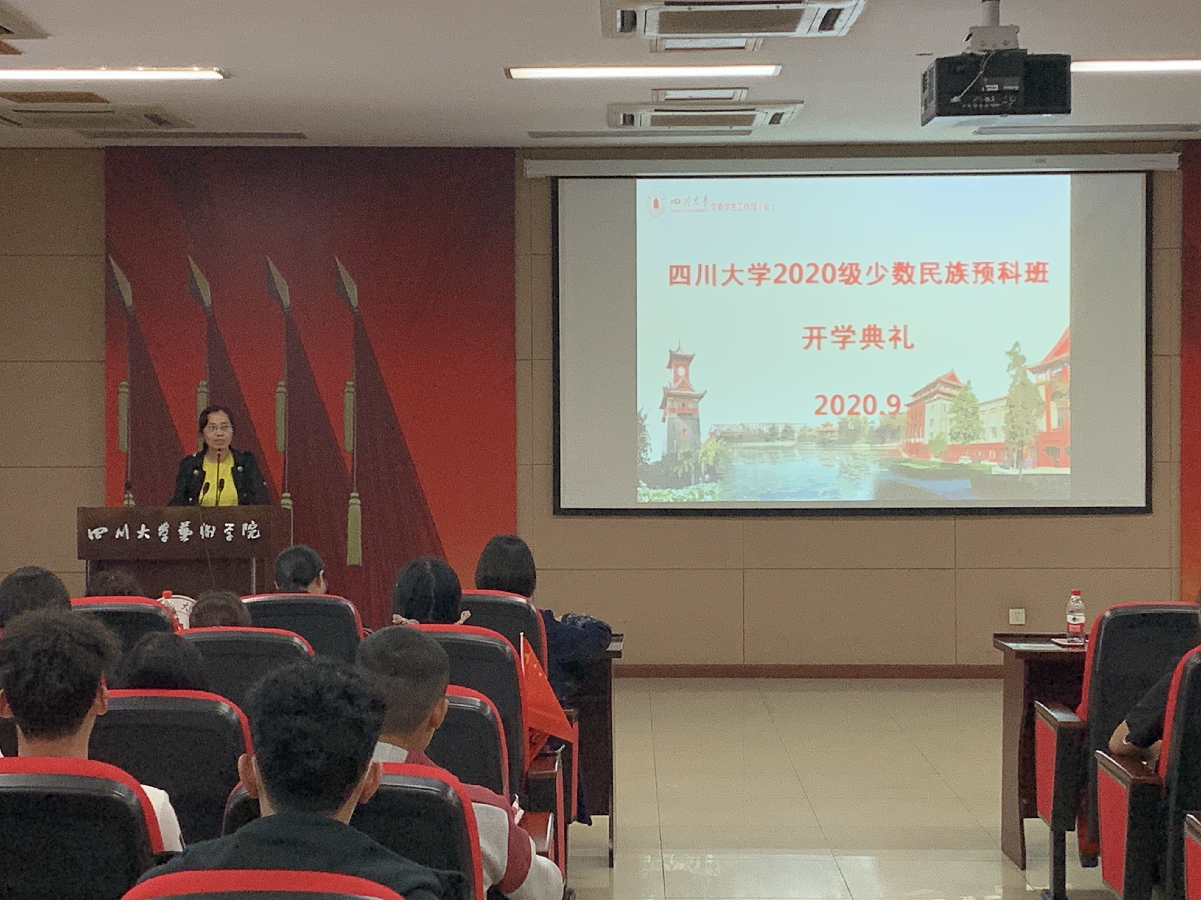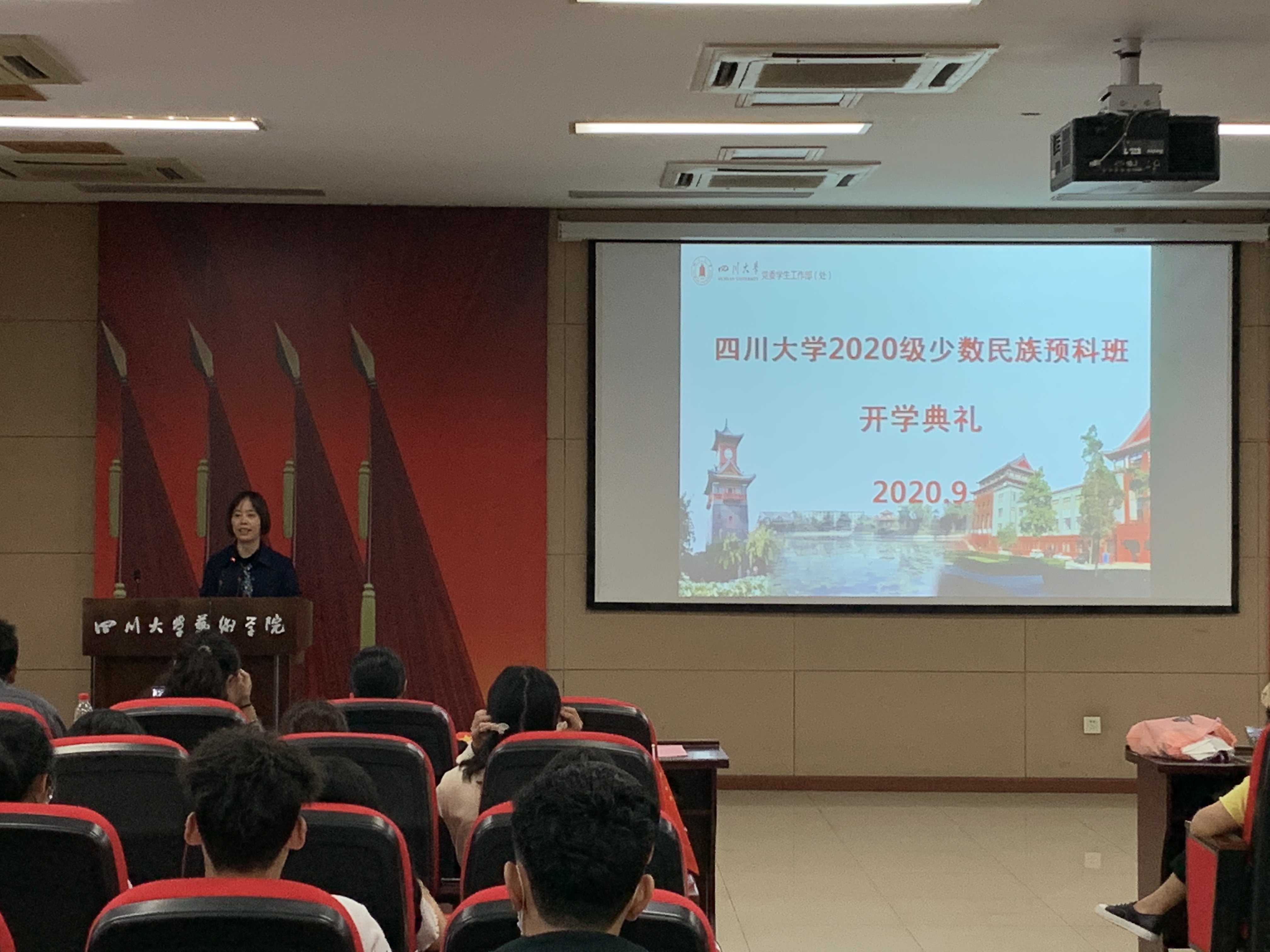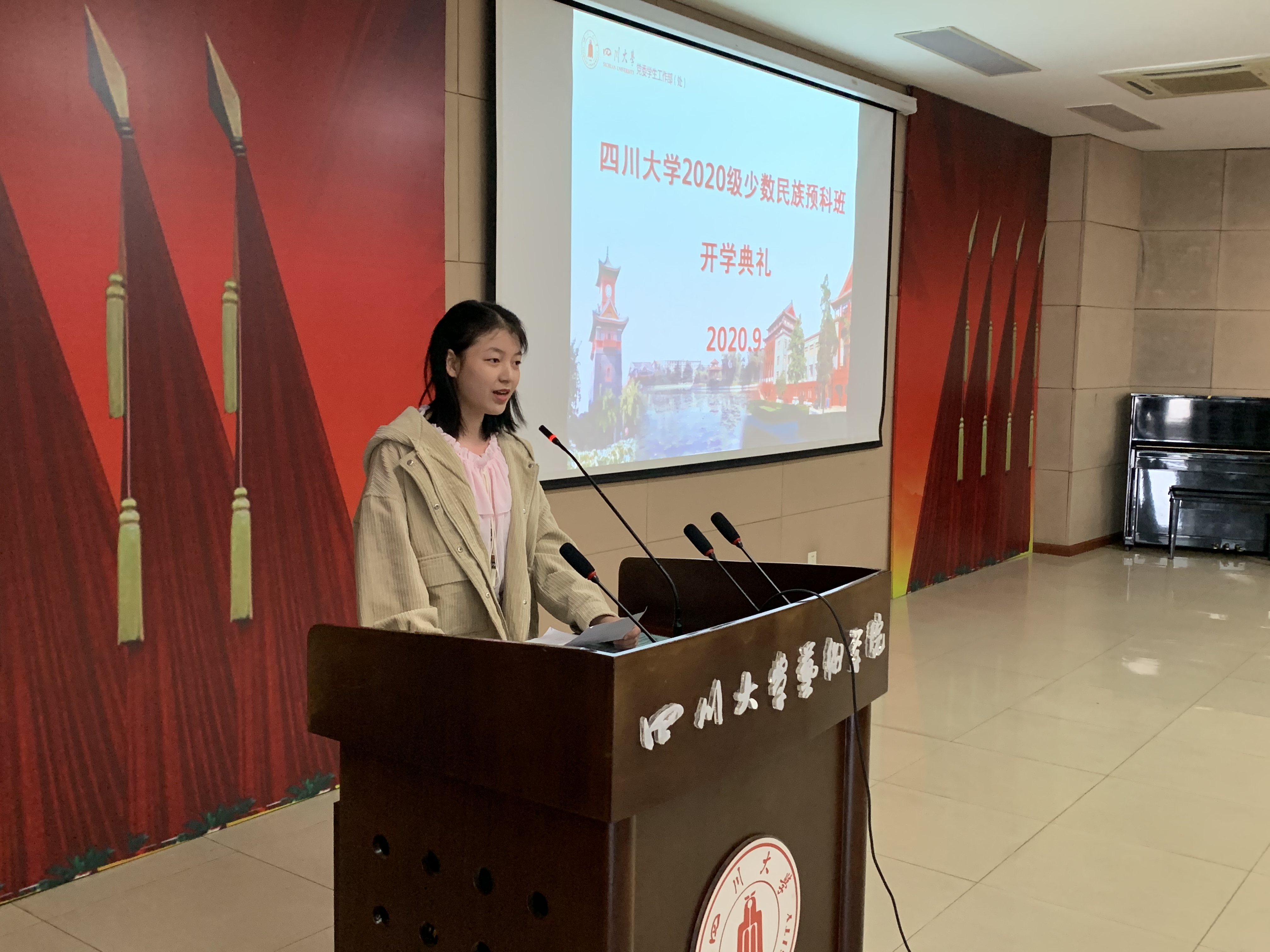 学工部副部长卢希芬在发言中介绍了川大招生中的少数民族预科计划、南疆单列计划、国家专项计划等进行了简单介绍,希望同学们珍惜国家给予的好机会、学校给予的好平台,找差距、补弱项,刻苦学习、努力奋斗。卢老师说,开学短短4天,同学们热情地参与新生接待志愿工作;冒雨开展节约粮食、光盘行动倡议,推广甘洛扶贫产品;用心整理美化宿舍……背后展现的是每一位同学优秀的品质,希望同学们能将预科班严格的管理内化为习惯和自律,养成良好写学习习惯和生活习惯,将优秀变成一种习惯。