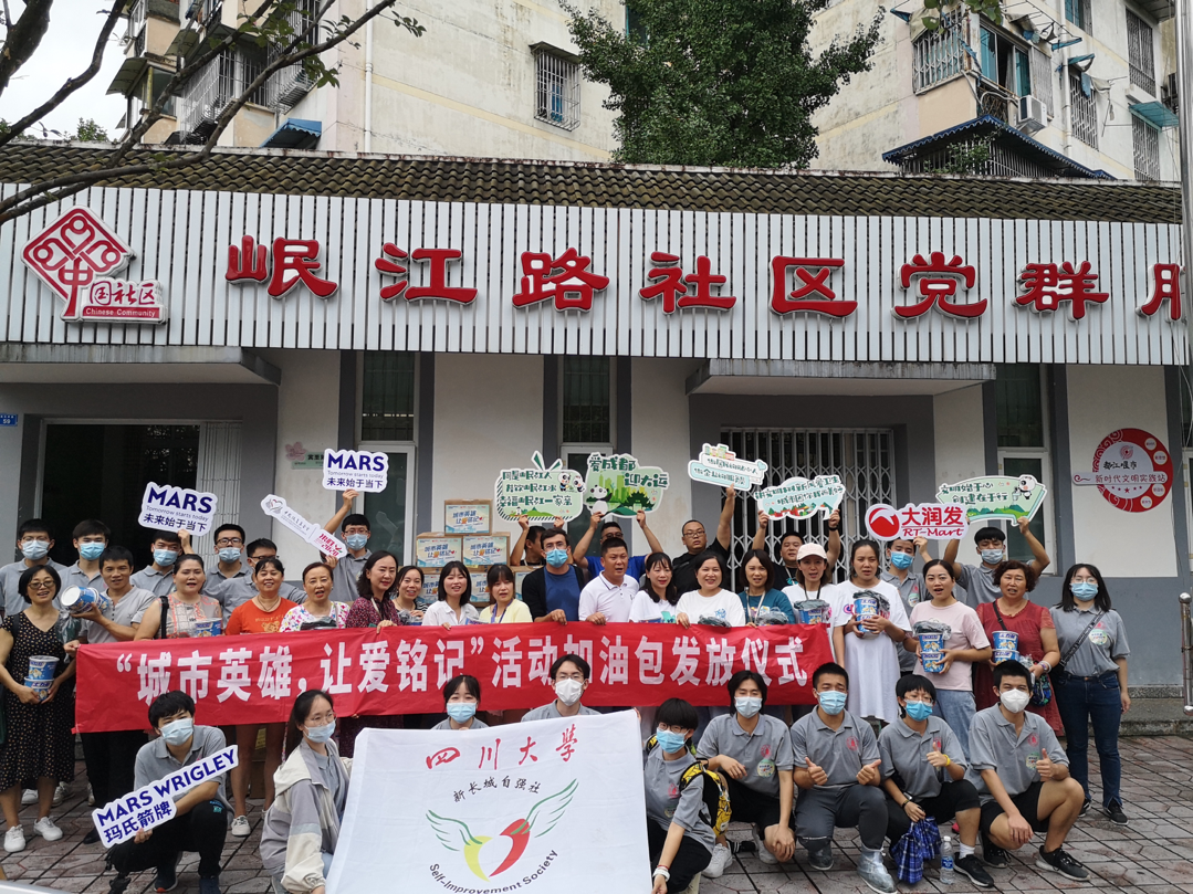 为感谢在抗击新冠肺炎疫情期间,坚守在一线的城市工作者,在中国扶贫基金会发热支持下,玛氏箭牌与大润发携手发起“城市英雄,让爱铭记”活动,通过“人人都是城市英雄”的线上感恩话语征集及投票方式,从全国选出10个此次活动的受益城市。在新长城122cc太阳集成游戏自强社的组织下,成都市在感恩征集前十的城市中位列第三,成为活动受益城市之一,自强社招募志愿者于8月12日执行为城市英雄发放“加油包裹”的活动。