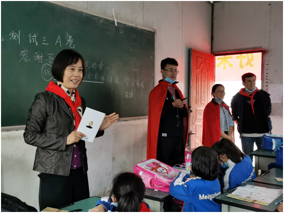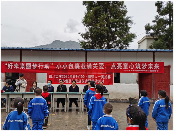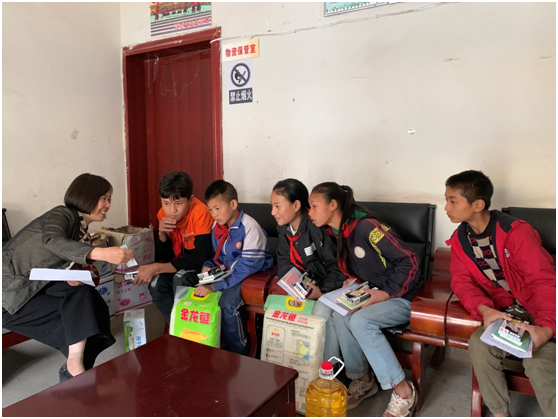 与孩子们在学校简单的午餐后,乘车返回美姑县城,下午2点30,志愿者来到城关小学进修校区发放爱心包裹。好未来公益基金会副秘书长秦鲁晓、美姑县县团委书记马吉石子、城关小学校长向崇文及我校学工部副部长卢希芬参加了发放仪式并进行了发言。秦鲁晓说,“自2013年由好未来教育集团发起的非公募基金会,为更多需要帮助的人提供平等享受优质教育资源的机会,希望孩子们都能拥有一个美好的未来”