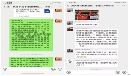 在这场疫情防控阻击战中,我校学子积极承担社会责任,以多种方式参与,尤其是处在疫情中心的湖北学子们,勇于担当、敢于风险,用行动彰显着青春力量,展现了川大青年学子的良好精神风貌。