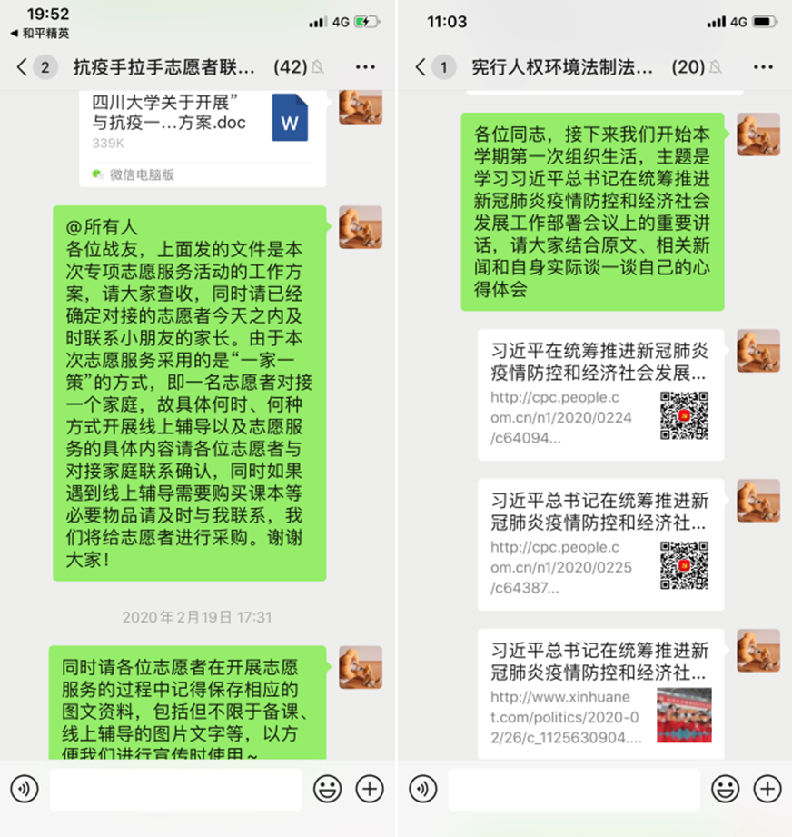 会议最后,老师们针对同学们提出的在线教学通讯专项补助、党员志愿先锋队、返校时间等问题进行了线上解答。