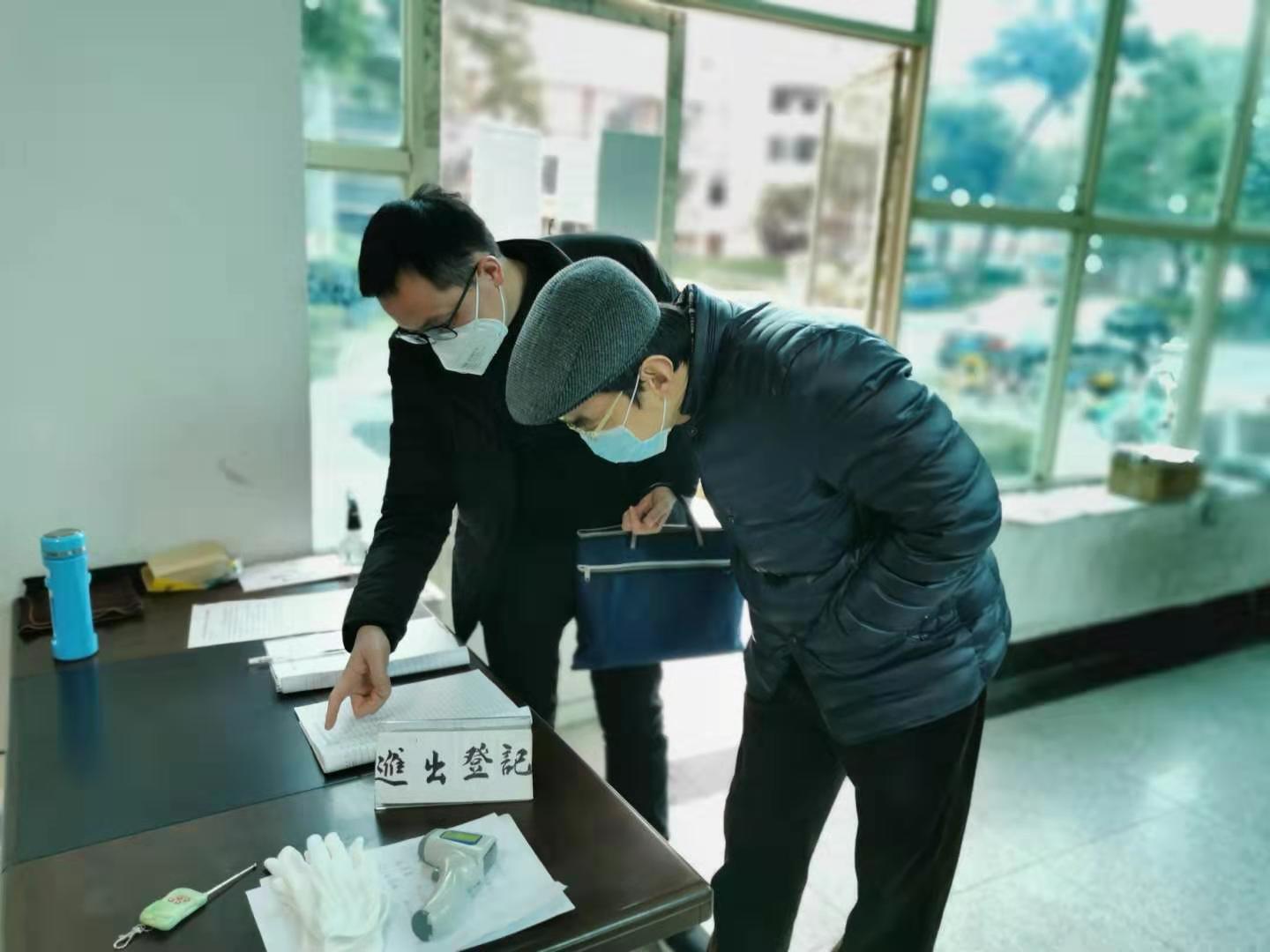 商学院辅导员唐建民与学院党委副书记李小平一同前往宿舍看望寒假留校同学,当他了解到有留校同学因买不到口罩而不便前往食堂就餐时,他当即为同学送去了自己家里的口罩。