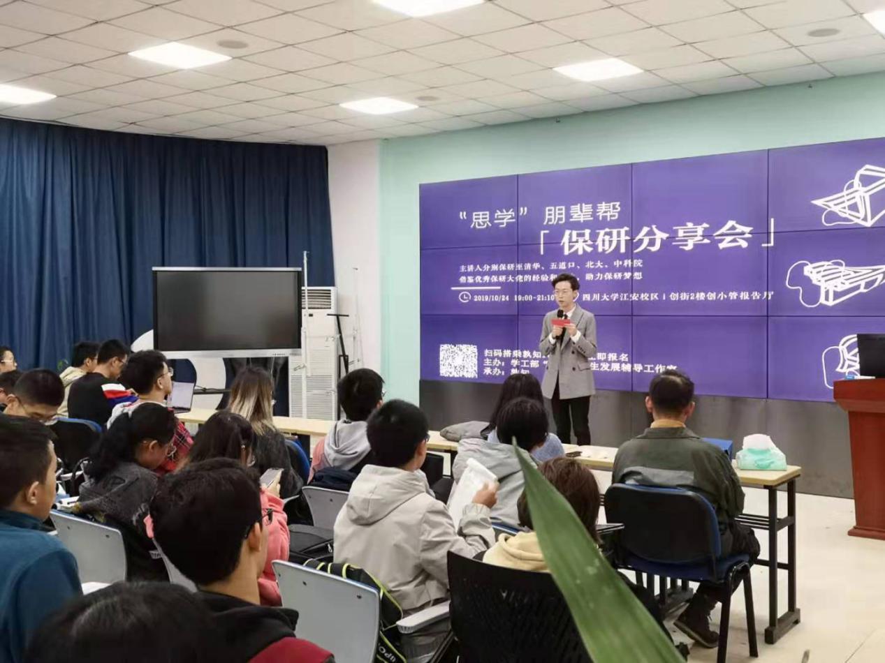 10月24日,学工部“思学”学生122cc太阳集成游戏工作室在江安校区i创街二楼报告厅开启了首场学业指导活动——“思学”朋辈帮保研分享会。