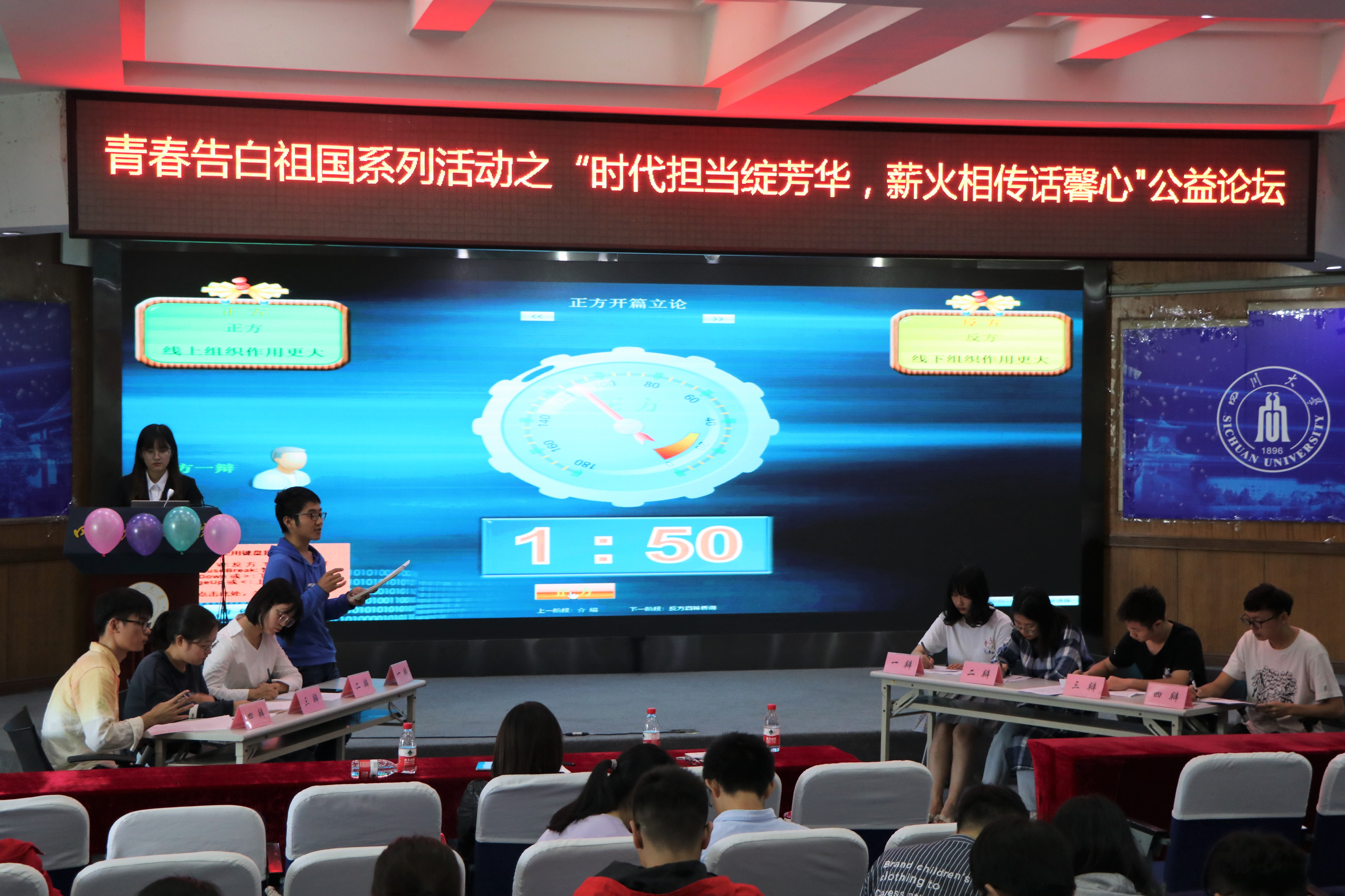 “如今公益是线上组织还是线下组织发挥了更大的作用”为辩题的辩论表演赛将公益论坛的热烈氛围推向高潮,辩手们各抒己见,展现出对公益诚恳专注的态度。辩论结束,刘程老师总结道,随着时代的发展,线上线下都在公益事业中发挥不可替代的作用,希望大学生们都能用自身所学在新时代为公益注入更多科技活力。随后,曾桂秀老师致闭幕辞,表达了对未来唐仲英德育奖学金交流会的建议与展望,并祝愿在场所有人能将对公益的坚守传承下去。