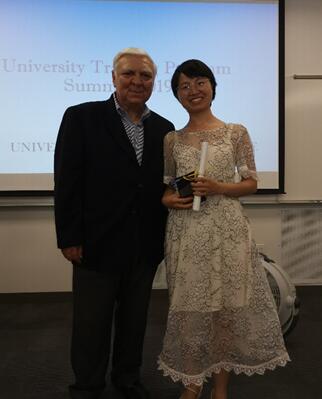 项目答辩之后,UCI校方为同学们准备了温馨而简洁的欢送午宴和结业典礼。毕业典礼中,项目负责人Kelly L. Oto进行了致辞,刘磊同学和李海蒂同学作为学生代表对两周以来的学习生活进行了总结,老师们为项目答辩的优胜组颁发了证书及奖品,并为每位同学颁发了结业证书和纪念礼物,最后,中美师生以及工作人员竞相合影留念并互赠礼物,氛围温馨、温暖。
