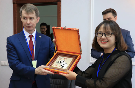 中俄双方代表互赠礼物