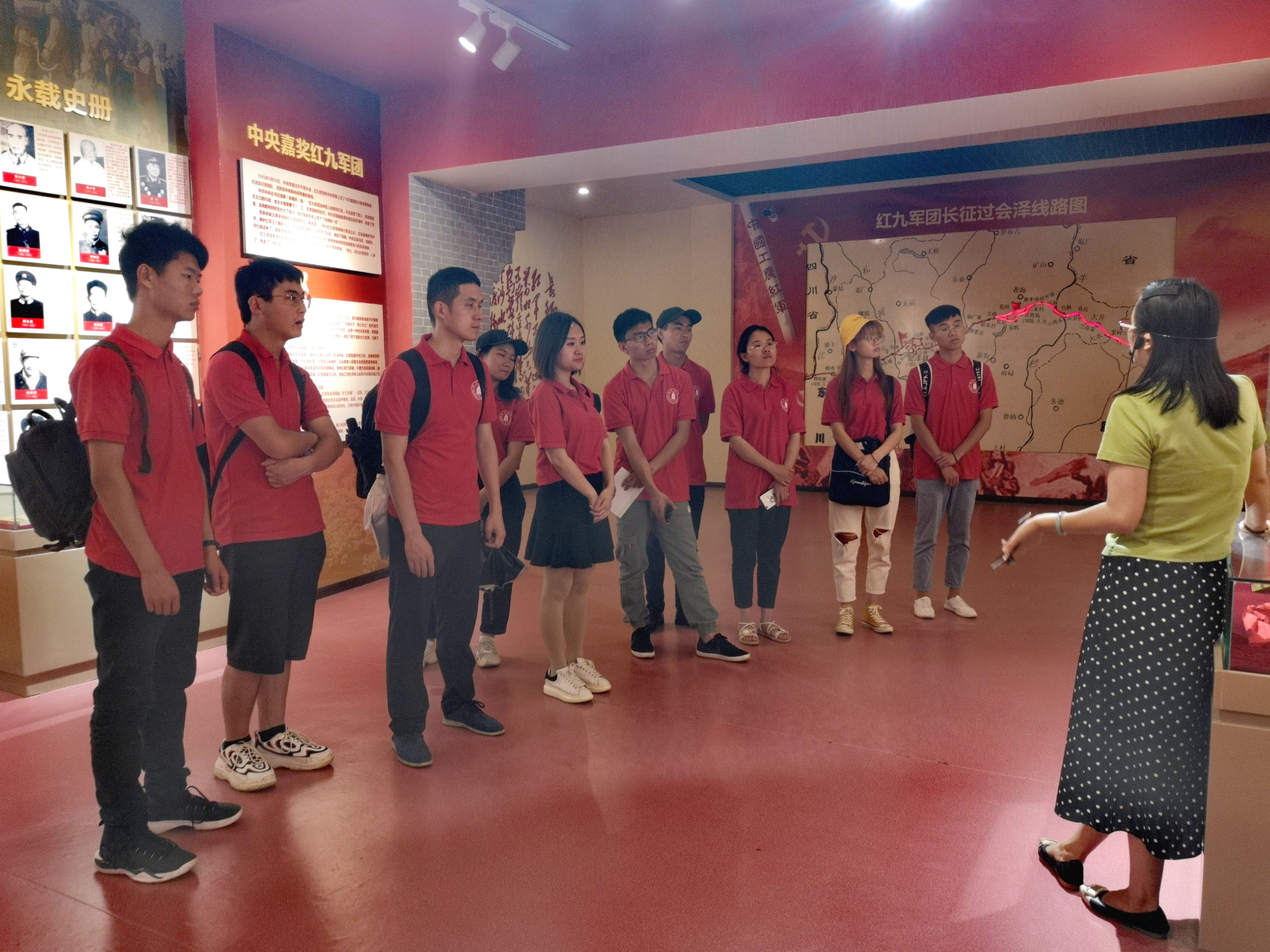 习总书记指出,“长征是一次唤醒民众的伟大远征”,它的胜利靠的是“与民同苦、为民而战”。7月底,学工部蒋永老师和空天学院付聪丽老师带领6名志愿者在云南省镇雄县重走赤水源头,感受当年红军在乌蒙山赤水源一带饮饥卧寒,与十几倍于我的敌人浴血奋战坚持到底,靠的就是群众力量。8月13日,学工部刘程老师、统战部郭军老师带领10名学生志愿者来到会泽扩军生态园进行参观学习。馆内巧妙采用投影与雕塑相结合的方式,生动再现了当年红九军团与当地群众的鱼水情谊,深刻感受到红九军团扩红史上最大的一次扩红热潮。7月26日,在参观完滇川黔革命委员会旧址的陈列物后,历史学院齐有明老师、外国语学院姜丽老师带领的12名志愿者团队深刻体会到党的群众路线的伟大英明,只有紧紧依靠人民群众,同人民群众生死相依、患难与共、发扬艰苦奋斗的精神,才能将星星之火发展到燎原之势。水电学院文艳琳老师带领三名学生志愿者来到会理会议旧址进行参观,这是遵义会议的成果得到巩固的地方,在感受完波澜壮阔的长征历程后更加明白今天美好生活的来之不易。