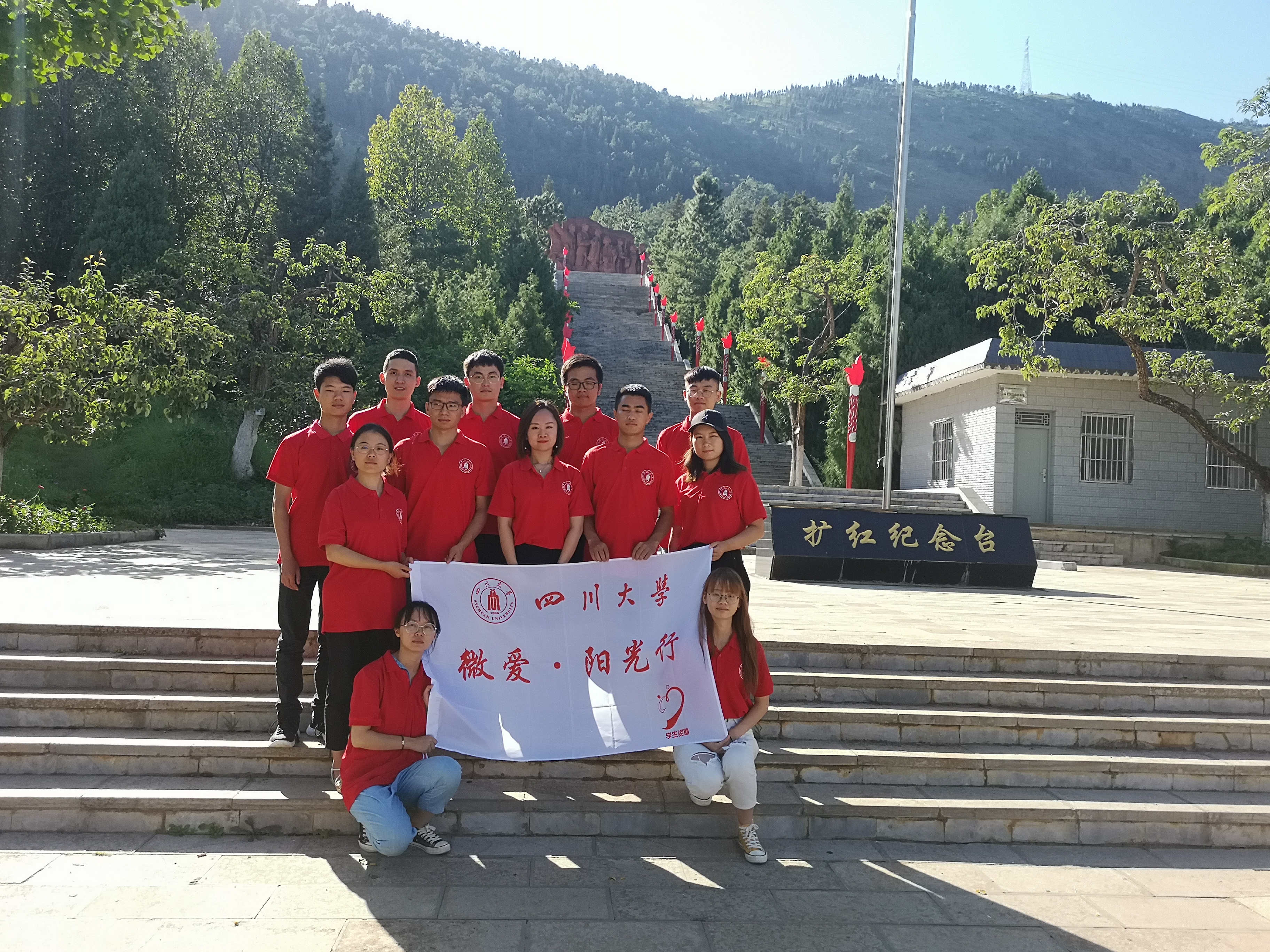 8月13日,10名学生志愿者在学工部学生资助中心刘程老师及统战部郭军老师的带领下,顺利抵达云南省曲靖市会泽县开启“微爱·阳光行,重走长征路”暑期社会实践活动,志愿者们一到会泽便前往县教育局进行调研交流,下午到达会泽水城扩红文化生态园,踏访革命足迹,追寻红色回忆,学习长征精神。