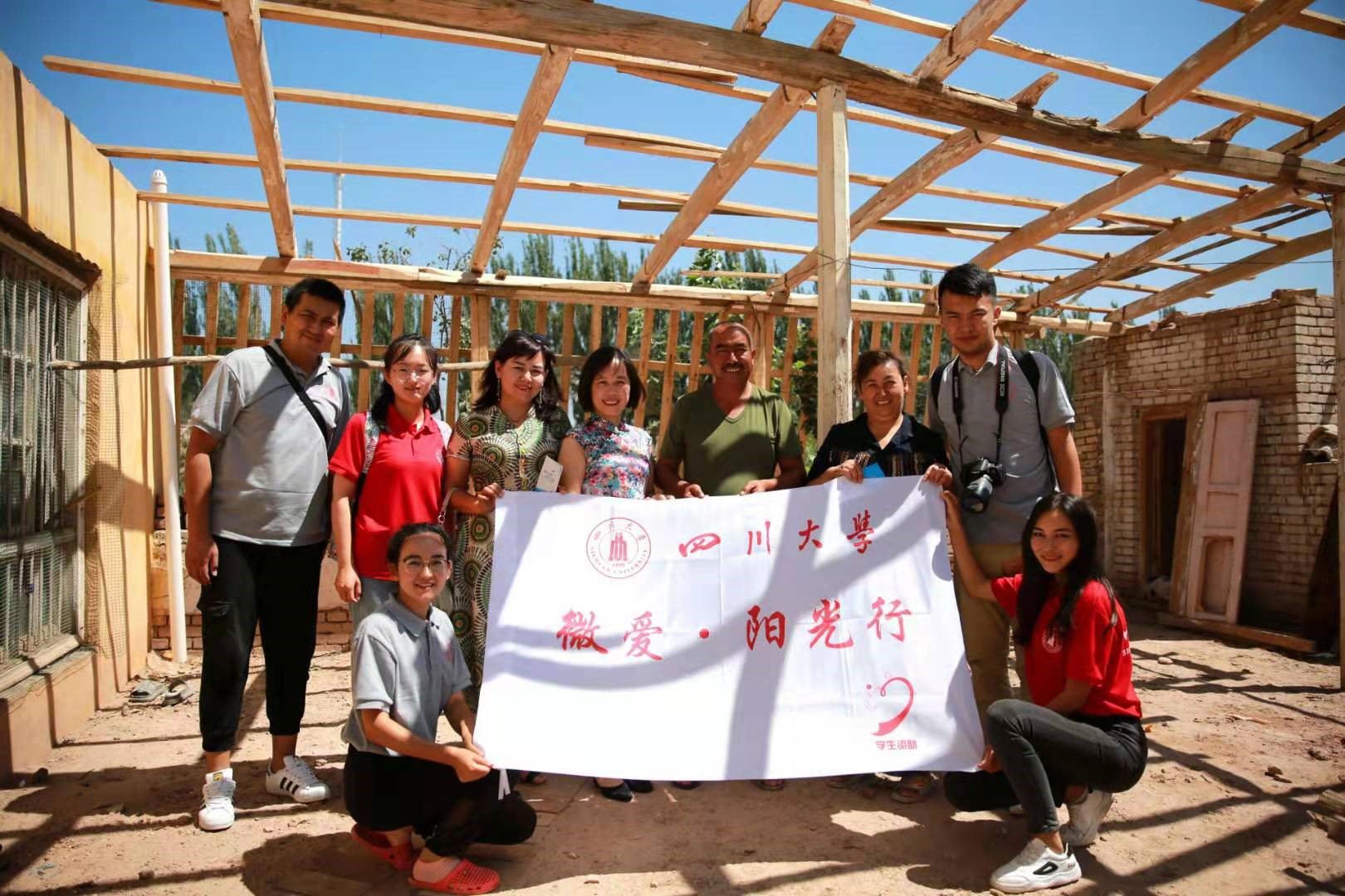 为全面落实我校资助保障体系,宣传资助政策及育人成效,加强家校联系,助力学生成长成才,2019年8月4日-8月8日,由学工部卢希芬副部长、陈元明老师、帕哈尔定老师,内派老师黄燕及12名学生志愿者所组成的微爱阳光行志愿团队,走进了祖国的西北边疆来到喀什、克州、和田的14个县及哈密市,行程9130余公里,经历170多个小时,头顶南疆40摄氏度的酷暑,对44名学生家庭进行走访,并看望12名基层就业的毕业生。