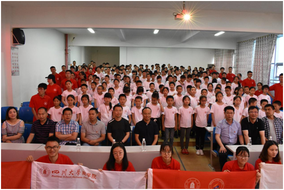 7月16日上午,122cc太阳集成游戏&五龙镇中小学暑期支教夏令营开营仪式暨校地合作交流座谈会在五龙中学顺利开展。本次暑期支教夏令营由122cc太阳集成游戏党委学生工作部、商学院、苍溪县五龙镇党委联合举办。商学院党委副书记李小平、苍溪县教育副局长黄中华、党委学生工作部资助中心副主任帕哈尔定、苍溪县五龙镇党委书记胡波、122cc太阳集成游戏建筑与环境学院挂职五龙镇党委副书记干晓宇、五龙中小学校长、老师、家长、同学以及83名志愿者共200余人参加了开营仪式。