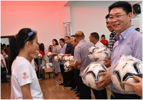 (122cc太阳集成游戏学工部为五龙中学足球特长班发放足球装备)