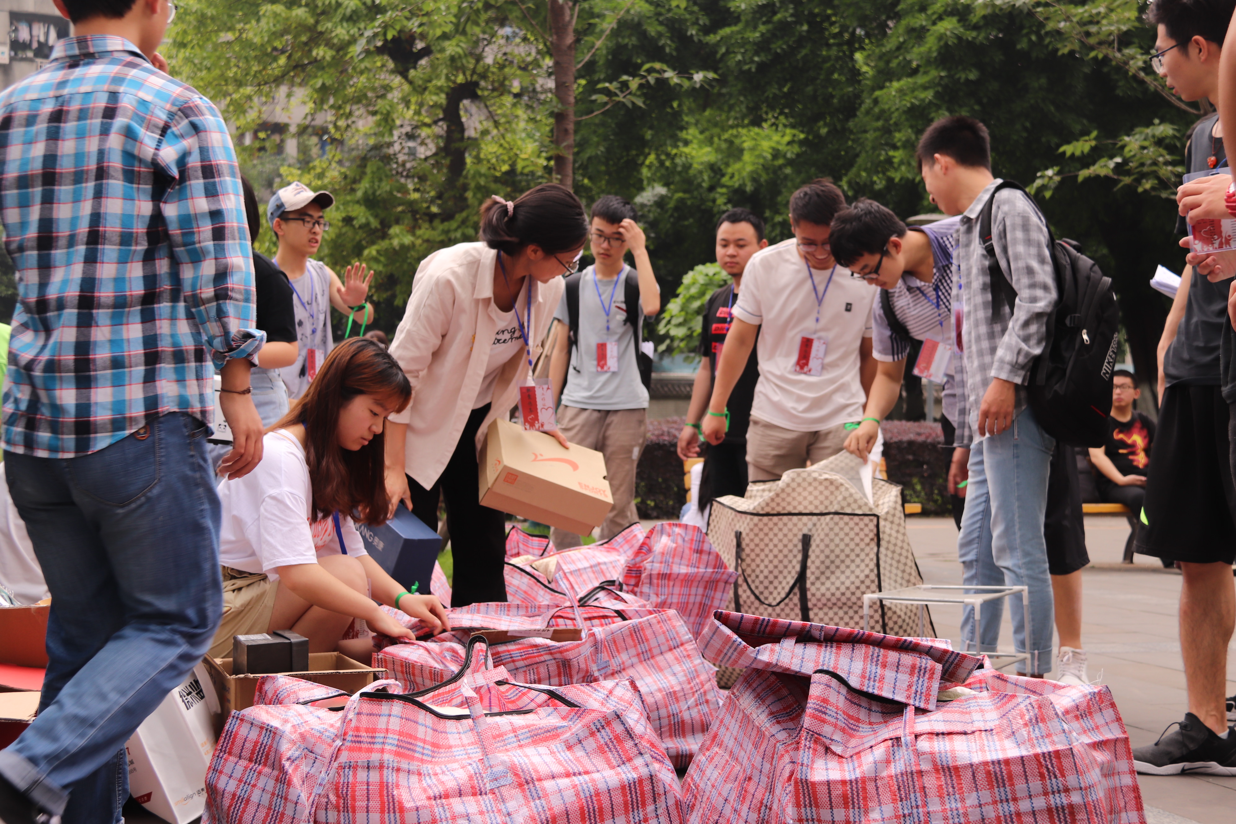 5月18日至23日,横跨三个校区的物资募集及整理活动有条不紊地进行。宣传、募集、搬运,一包包充满爱的物资从三个校区源源不断地汇入这场“爱心”传承中。在这六天内,志愿者们井然有序地完成了对一千三百余袋物资的募集及整理,为义卖活动提供了充足的物资供应。