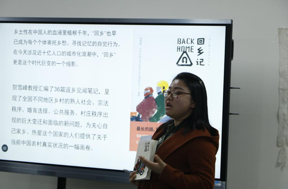 开篇文新学院研究生宋雨霜以学术的观点为同学们讲解了乡味十足的《回乡记》,让大家回忆起家乡的温暖,同时带给了在座的每人一个问题——“曾经熟悉,如今陌生的故乡,是时代巨变,还是城乡中国的巨大反差让我们焦虑不安?”