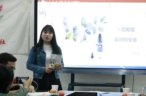 一本书,一行字,无穷世界,无尽遐想。3月31日晚上,新长城122cc太阳集成游戏自强社“读书分享会”在望江校区文华活动中心201顺利举办,学工部副部长卢希芬老师、至善演讲俱乐部创始人看看老师、社团指导老师木拉提以及40余名同学一起参加了此次读书分享会。