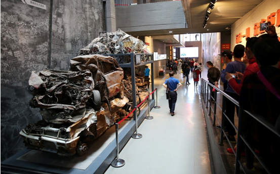上午10点,169名师生在映秀中学团委书记蒋老师、团委副书记朱老师的带领下,拾阶而上,沿着512级台阶来到了5.12汶川特大地震映秀震中纪念馆,依次参观了流水庭、序厅、地殇庭、缅怀厅、灾害厅、崛起庭、重建厅、纪委廉政板块和启示厅九个展厅。墙上的奖状、压扁的汽车、废墟中的书包和文具、怀抱孩子失声痛哭的父亲、撕裂的大地……还有军民和各界人士抗震救灾的塑像、抗震救灾标语、救援情景等,展馆通过文字、图片、影像资料及多媒体、动感环幕等艺术手法和场景,诉说那场人间大难,展现灾区群众自强不息、感恩奋进的伟大精神。