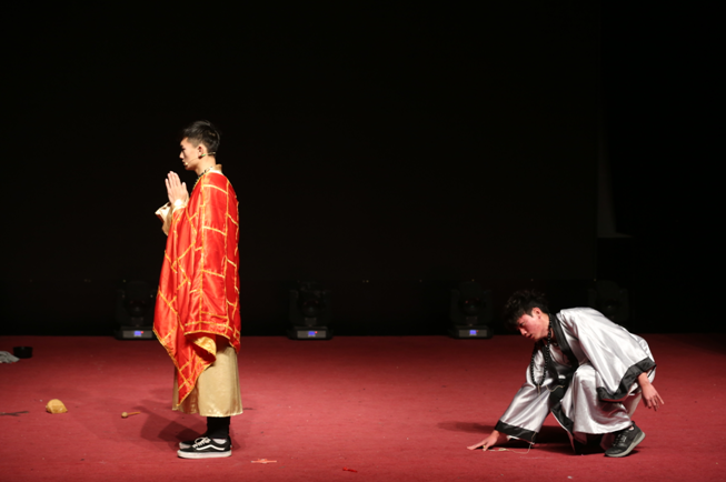 伴随晨钟暮鼓,《从前有座山》揭幕,青山上,无名庙,一老一少两和尚的聚散离合似乎让人看到了父辈和子辈的两难,小和尚的离去是终章还是开篇;《三块钱国币》围绕花瓶事件揭示当时社会恃强凌弱、无法无理的现象,表现了大学生的正义感和同情心;《雷雨》第一幕在鲁家的人物对话中垫下全剧压抑、沉闷的基调,第三幕在周朴园逼迫繁漪喝药的矛盾冲突中展现居中人物的悲剧人生……除此之外,还有《日出》《孔雀东南飞》《驴得水》《北京人》《暗恋桃花源之暗恋》《荆轲刺秦王》等,同学们把经典剧目中的老和尚、小和尚、周朴园、四凤、金子、荆轲等角色演绎得淋漓尽致,让观众时而紧张压抑,时而悲伤落泪,时而欢心愉悦。