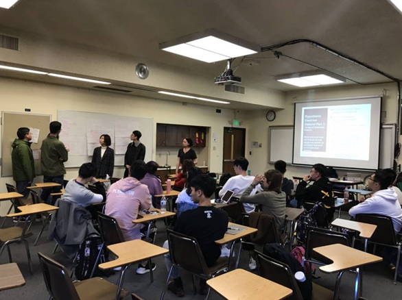 在上课的过程中,伯克利老师的教学方式有着与国内截然不同的特点:老师们更倾向于以分组讨论的方式让同学们思考问题,旨在培养团队合作与沟通交流的能力,而且在每位同学回答完问题之后,总是会给出许多肯定积极的评价,例如“Awesome”,“Perfect”,“Amazing”等夸奖与赞美之词,鼓励同学们积极参与到课堂讨论中来,踊跃表达自己的观点。这里的老师喜欢通过一步步的引导,使同学们往深处思考,通过简单的问题看出背后的深意,或者将一些知识的内容以图形的形式呈现出来,这样更能帮助同学们记忆和理解重要的知识点。