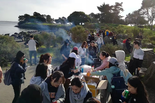 紧张的学习之余,学校也安排了丰富的课外活动,海边BBQ便是其中最精彩的活动。伯克利当地居民比较喜欢海边烧烤,当地政府更是在海边立起了烧烤炉,供市民免费使用。1月27日下午完成workshop之后,同学们终于踏上了海边BBQ的旅程。在伯克利校园附近的海边,带队老师们早早为同学们准备好了BBQ所需要的丰富多彩的食材:饮料、小吃、烧烤需要的肉类等等,一路上大家都兴奋不已。到达目的地后,同学们分工合作,男生搬运食材负责生火,女孩子们帮忙摆好餐具,做好准备工作。