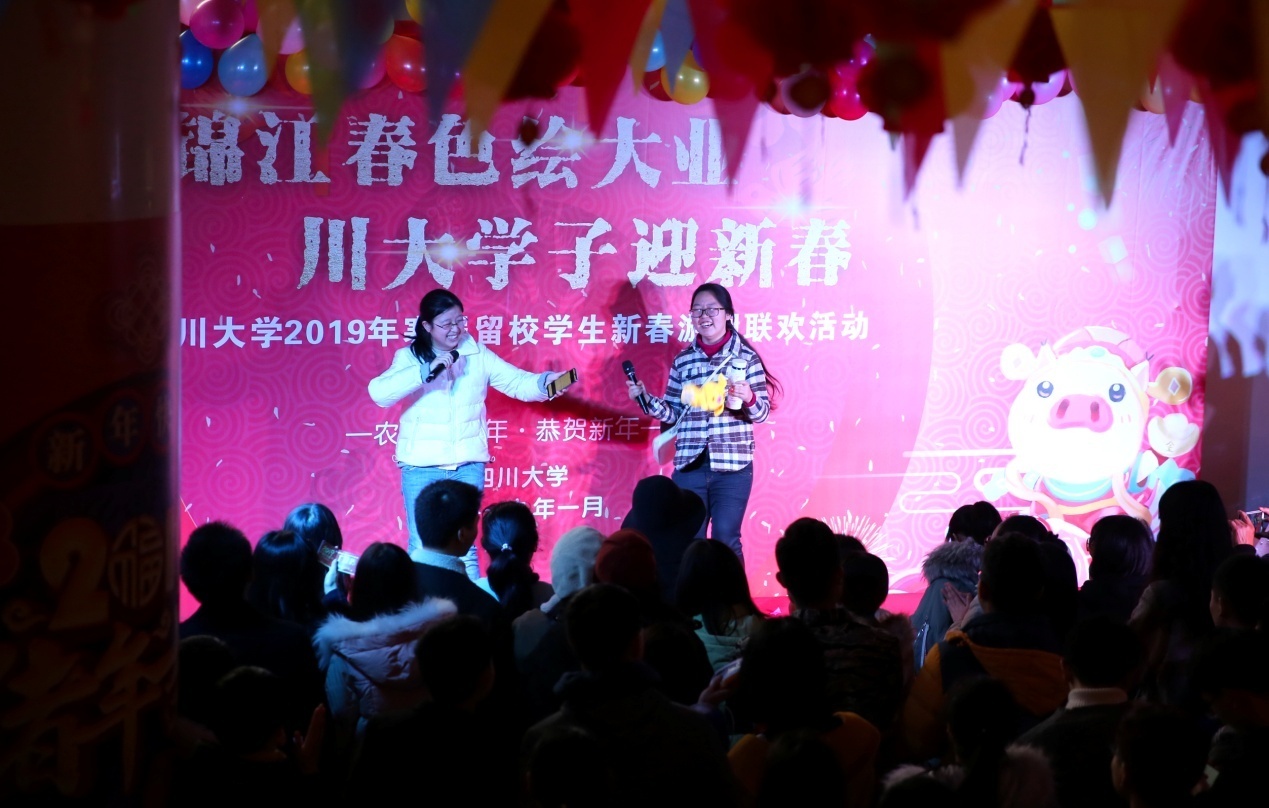 “没能回家团聚的同学们,能和川大的家人一起同度佳节,这是学校给予的最好的礼物”;“表白川大,表白资助中心的老师们,表白所有付出的同学们,爱你们”;“第一次做主持,在活动当天,竟然没有一丝的紧张”;“没人和我一起来参加活动,本以为会很无聊,很尴尬,但到了现场,我才发现气氛是那么的活跃,大家就像一家人一样,十分的热闹,十分的喜庆;”“看到老师们那么地投入,那么得热情,心中更加温暖了。回头想想,好像整场联欢会,我脸上的笑容都没有停下;”“突然想每次寒假都晚回家一会儿,和我的大川再多来几次联欢会;”“在我川的第6年啦,第一次参加了传说已久的新年游园会!” “大家都好热情,每个游戏都玩得很开心,还第一次写了对联,回家就贴上”······同学们用热情和激情表达对新年的期许和对彼此的祝福。
