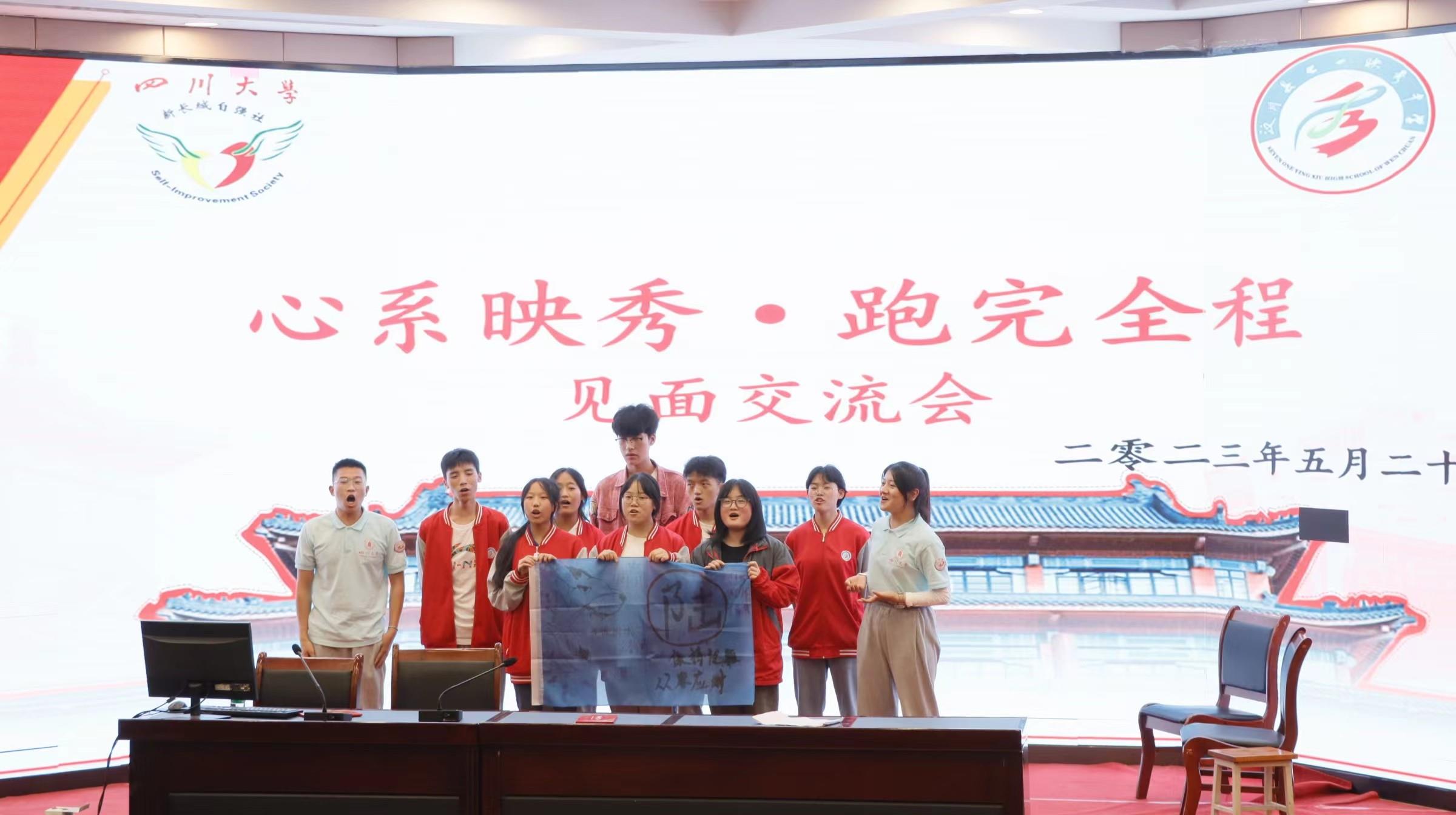 5月28日晚上7点,此次“跑完全程”活动成果以高中生汇报表演的方式在映秀中学的报告厅进行。聂宁副校长在致辞中感谢川大连续11年组织志愿者以“跑完全程”结对高中生,助力学校的育人事业。他希望高中生通过这次活动,学习川大以校风“严谨、勤奋、求是、创新”和校训“海纳百川,有容乃大”为核心的川大精神,与大学生携手以奔跑的姿态面对人生。