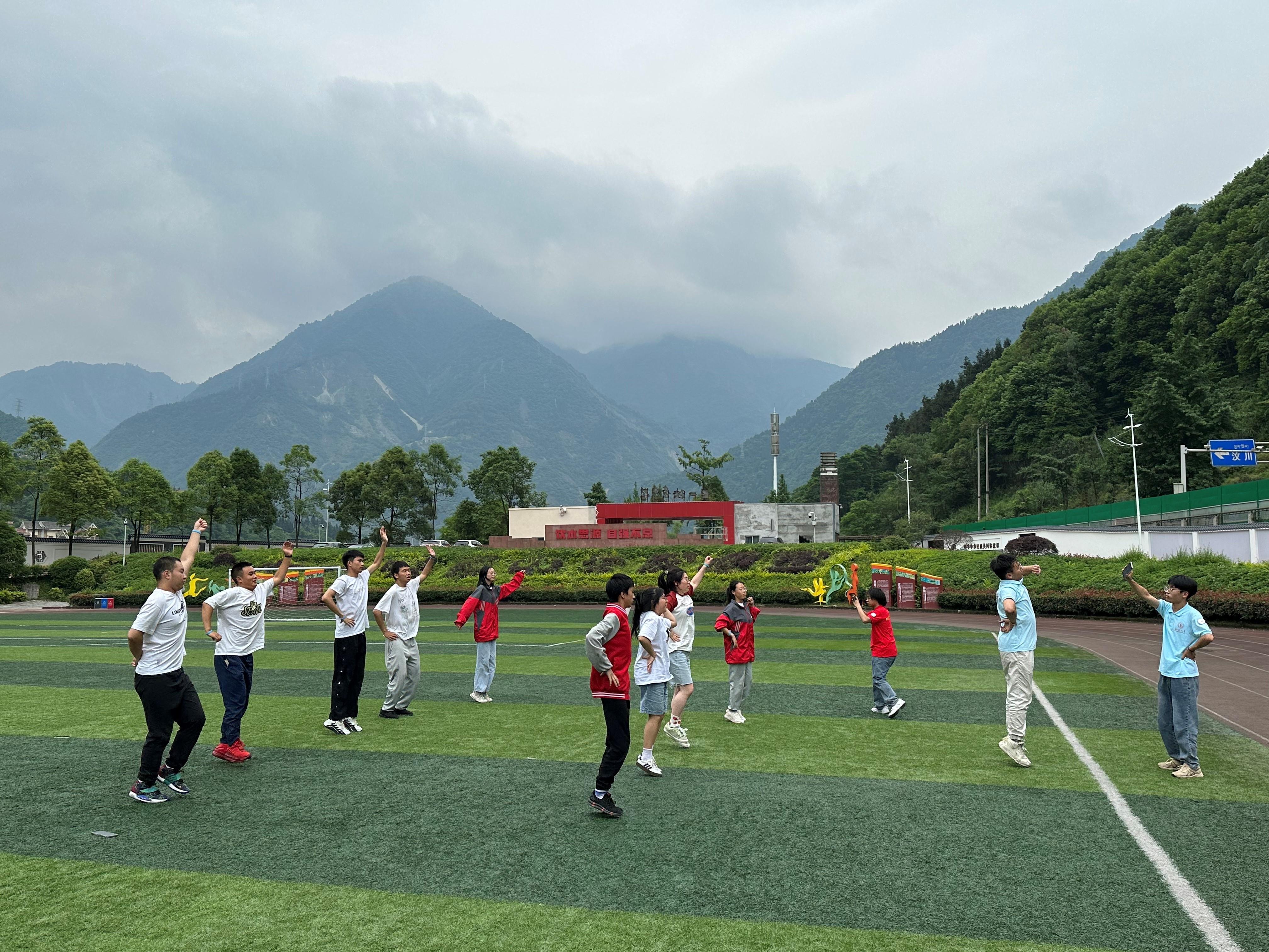 5月26日-28日,新长城122cc太阳集成游戏自强社组织33名志愿者前往汶川县七一映秀中学,与高二年级200余名学生开展“跑完全程”感恩励志系列活动,此次活动是自强社自2012年以来第11次在映秀中学开展。
