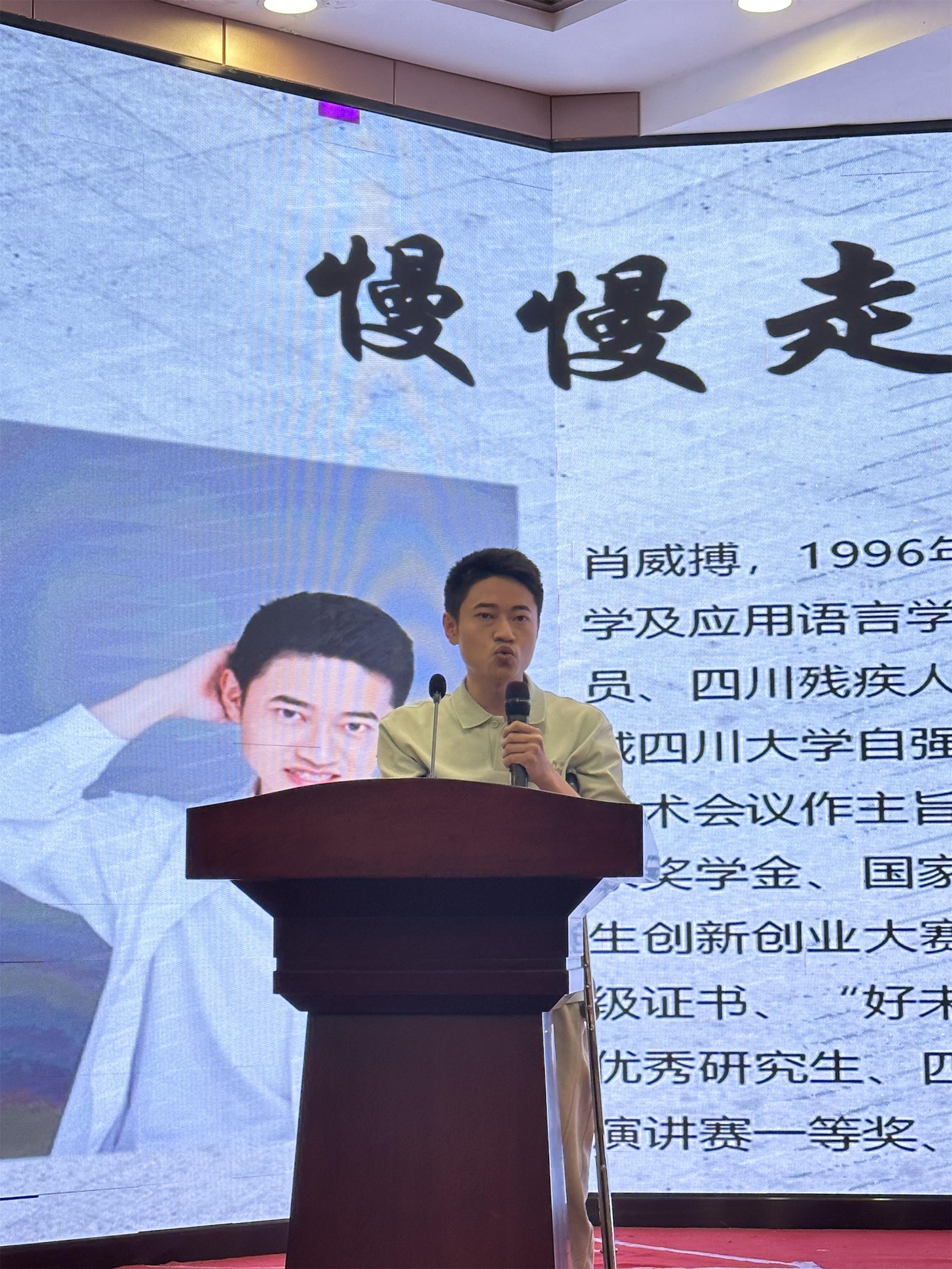下午两点,在映秀中学报告厅,志愿者带领同学们开展了“我的故事”分享活动。志愿者尤二垒在分享中讲述了自己与挚友相互鼓励,一起披星戴月追梦、圆梦的故事;志愿者肖雨欣则分享了自己面对高考的压力、父母的不理解时,如何在老师的帮助下走出困境的故事;志愿者卢钘华用自己亲身经历告诉同学们,经历困难和挑战获得的成长和快乐最为可贵……在志愿者的影响下,同学们也勇敢站上舞台,分享自己的故事。学校青春励志宣讲团成员、自强社社长肖威搏用自己跌倒一次就站起来一次、跌倒一千次就站起来一千次的故事激励同学们努力拼搏、勇毅前行。