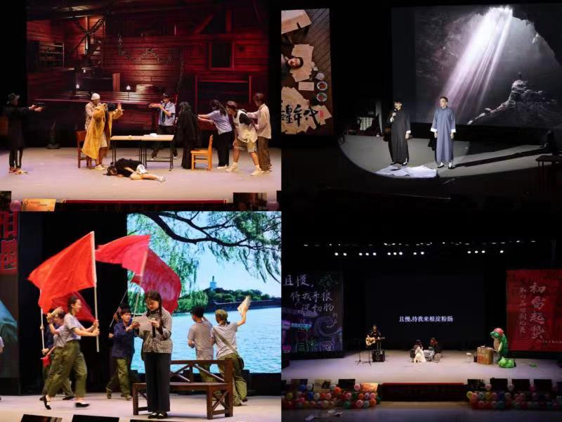 随着灯光变换、音乐响起,11个剧目精彩纷呈:《你记得我,我就活着》一位叫王春的战士从1949年5月解放上海的战役穿越至2023年5月27日的上海解放军纪念馆,在与上海解放74周年特展讲解志愿者的对话中知道“这盛世正如自己所愿”;《玉章往事》不仅让我们看到了为民族独立、中华复兴而苦苦求索的川大老校长,也看到了吴玉章先生对妻子的缠绵悱恻;《隐形守护者》中的特工肖途经历重重考验,背负骂名,成功为潜入敌人内部,截取重要信息,为革命直至献出生命;《一梦枕华胥,引吭起高歌》周恩来从一堂“立命”课穿越至春秋时期孔子与弟子坐而论道的杏坛,在诸子的思想启迪中,坚定了“为中华之崛起而读书”的伟大理想;《觉醒年代》中哀其不幸、怒其不争的鲁迅、钱玄同在“寻药”中与陈独秀、李大钊相遇找到思想之光;《相遇》中为中国核事业隐姓埋名的高远在即将走到生命尽头的时候终于和恋人相遇《且慢,待我来根淀粉肠》道尽了青年学子成长的烦恼但拨开迷雾,殊途同归于披荆斩棘、奋力前行的“平凡之路”……现场观众深陷戏剧冲突矛盾中,随情节跌宕起伏,随人物忽喜忽悲