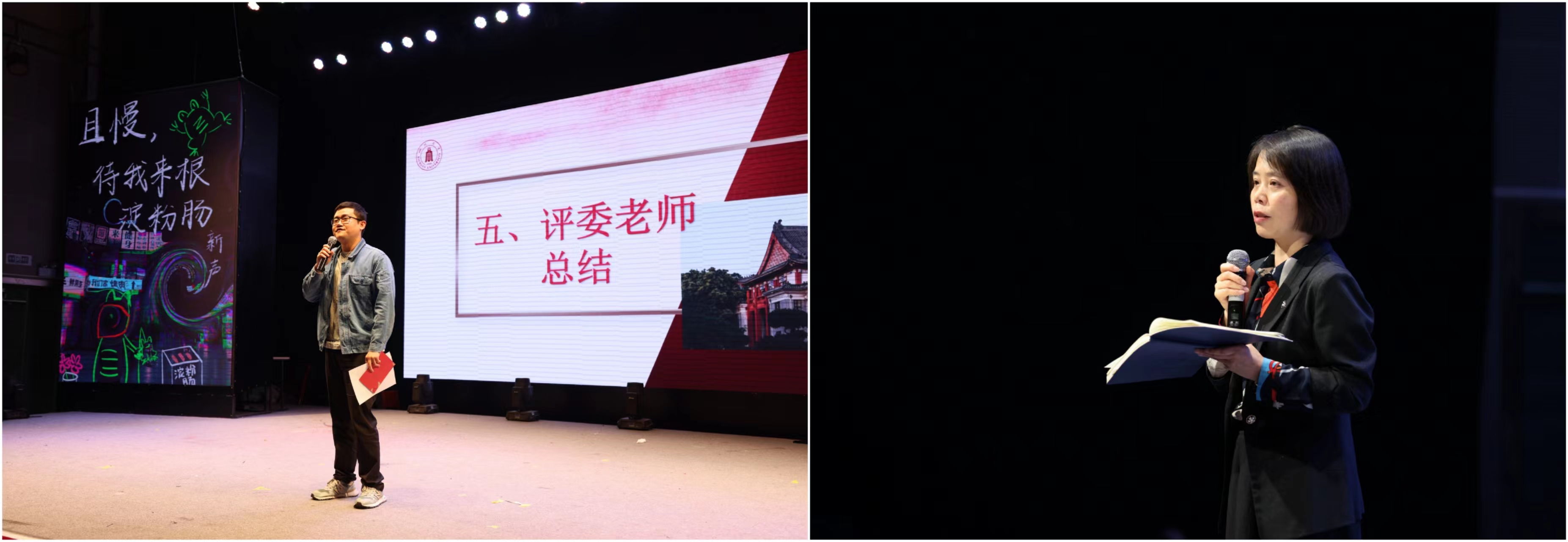 预科班语文老师蒋文正点评了此次活动。蒋老师祝贺每一个剧目的成功演出,点赞同学们关心历史、关注现实、乐享生活的青春风貌。学工部副部长卢希芬在总结中赞赏同学们有故事、有新意、有思想、有深度的精彩表演感谢同学们用业余的表演带给大家专业的感受,希望同学们在一段段峥嵘岁月的演绎中和一个个革命人物的塑造汲取奋进力量,追光前行。